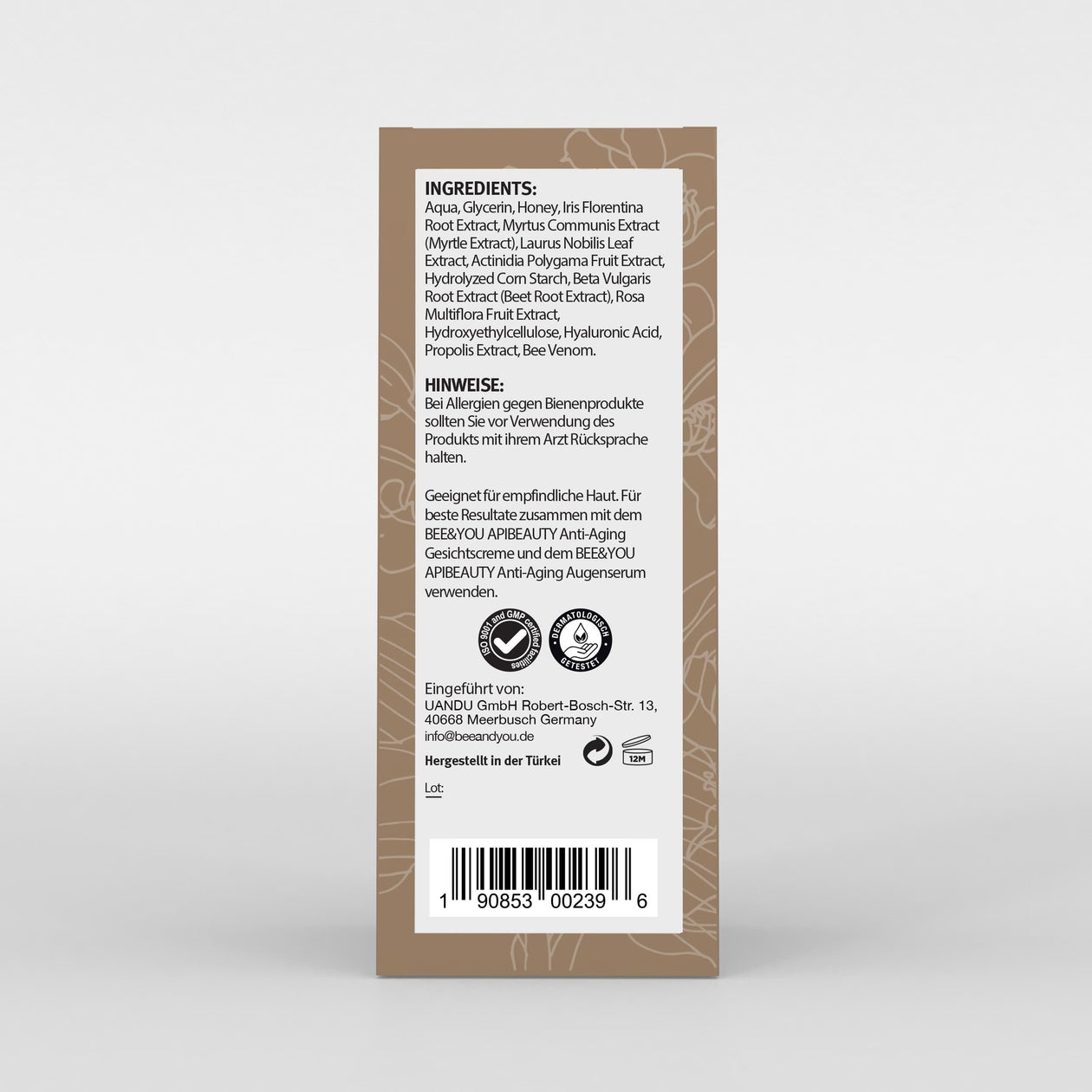 - You get the best results in combination with the BEE&YOU APIBEAUTY Anti-Aging Face Cream and the BEE&YOU APIBEAUTY Anti-Aging Eye Serum.