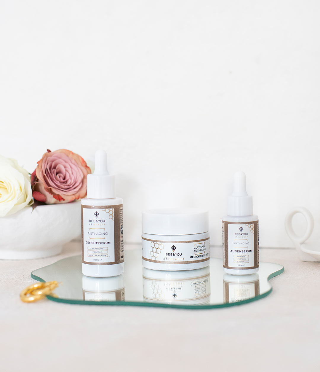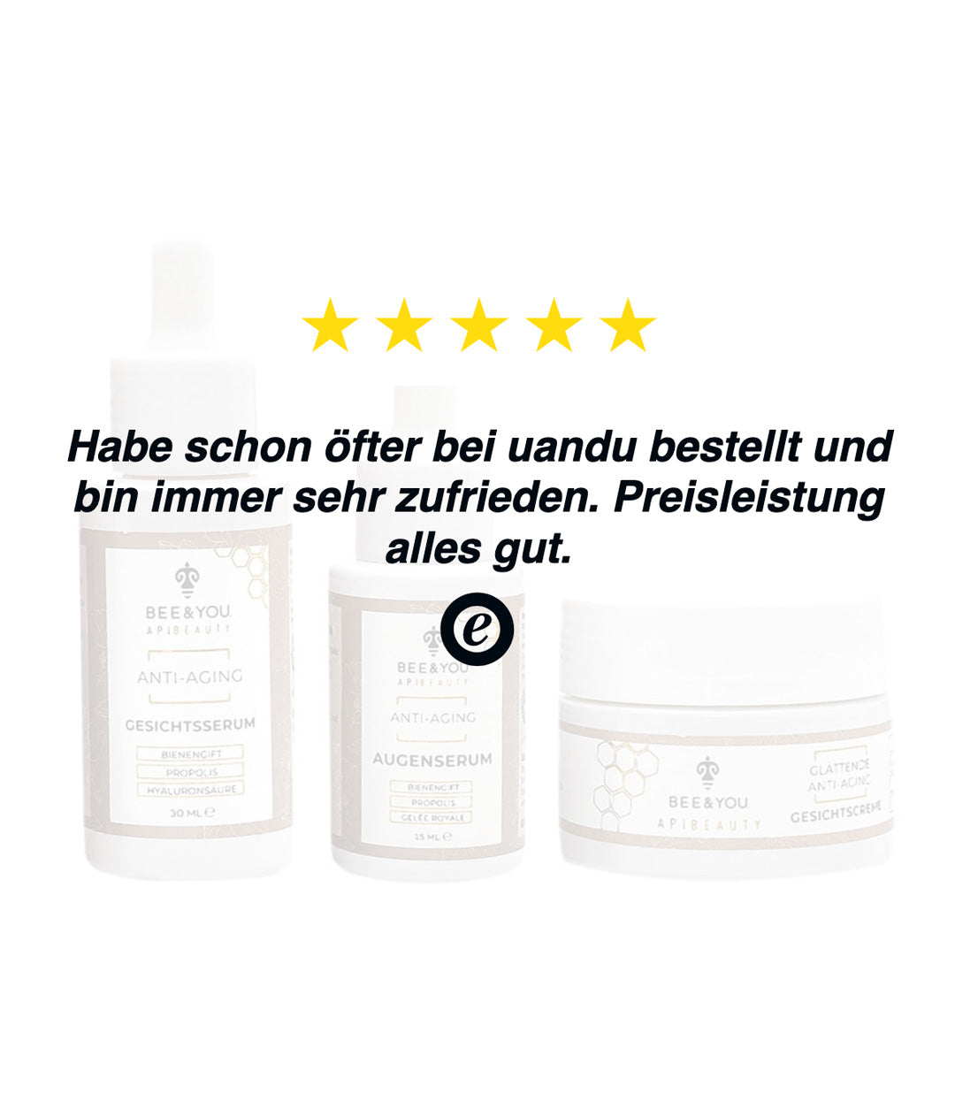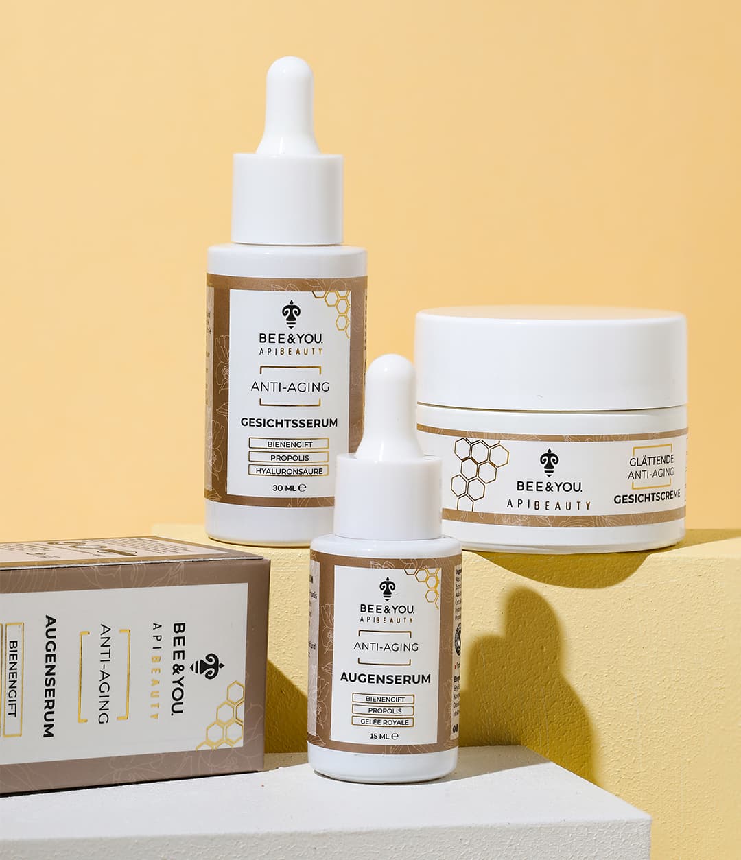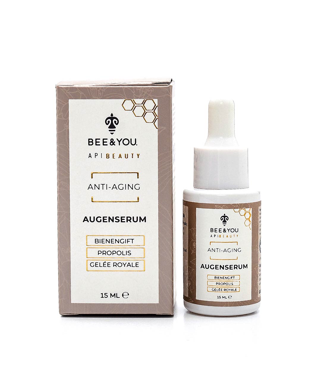 BEE&YOU APIBEAUTY Ensure effective eye contour care with the anti-wrinkle anti-aging eye contour serum! With propolis, raw honey and natural plant extracts, wrinkles around the eyes are reduced and the skin's moisture balance is maintained at the same time. Regular use of bee venom and hyaluronic acid reduces wrinkles by tightening the skin.