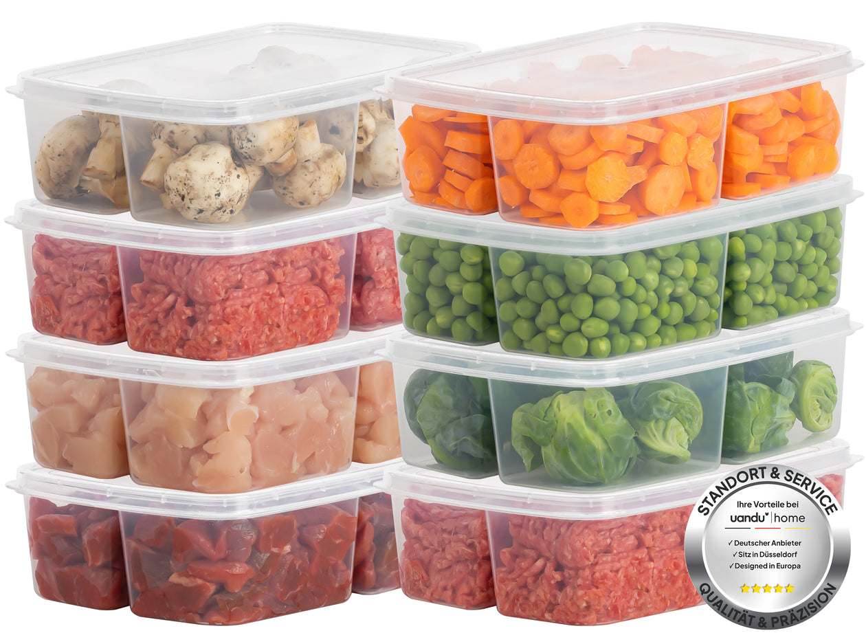 Gefrierbox Set, Frischhaltedosen mit Deckel 8x400ml divided transparent