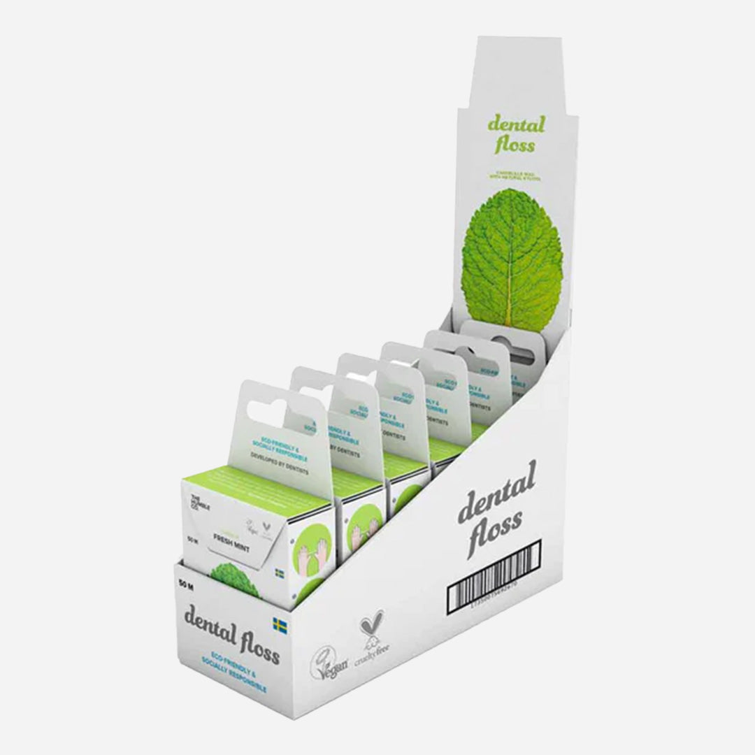 Dental floss enriched with Xylitol Candelilla wax and covered in a fresh mint flavor. Pfas free, cruelty free and vegan. Keeping your mouth clean has never been easier or tastier! Refreshingly flavored and coated with candelilla wax, the lightly textured thread has been carefully designed to gently remove the hidden discomfort, leaving your mouth fresh and clean.
