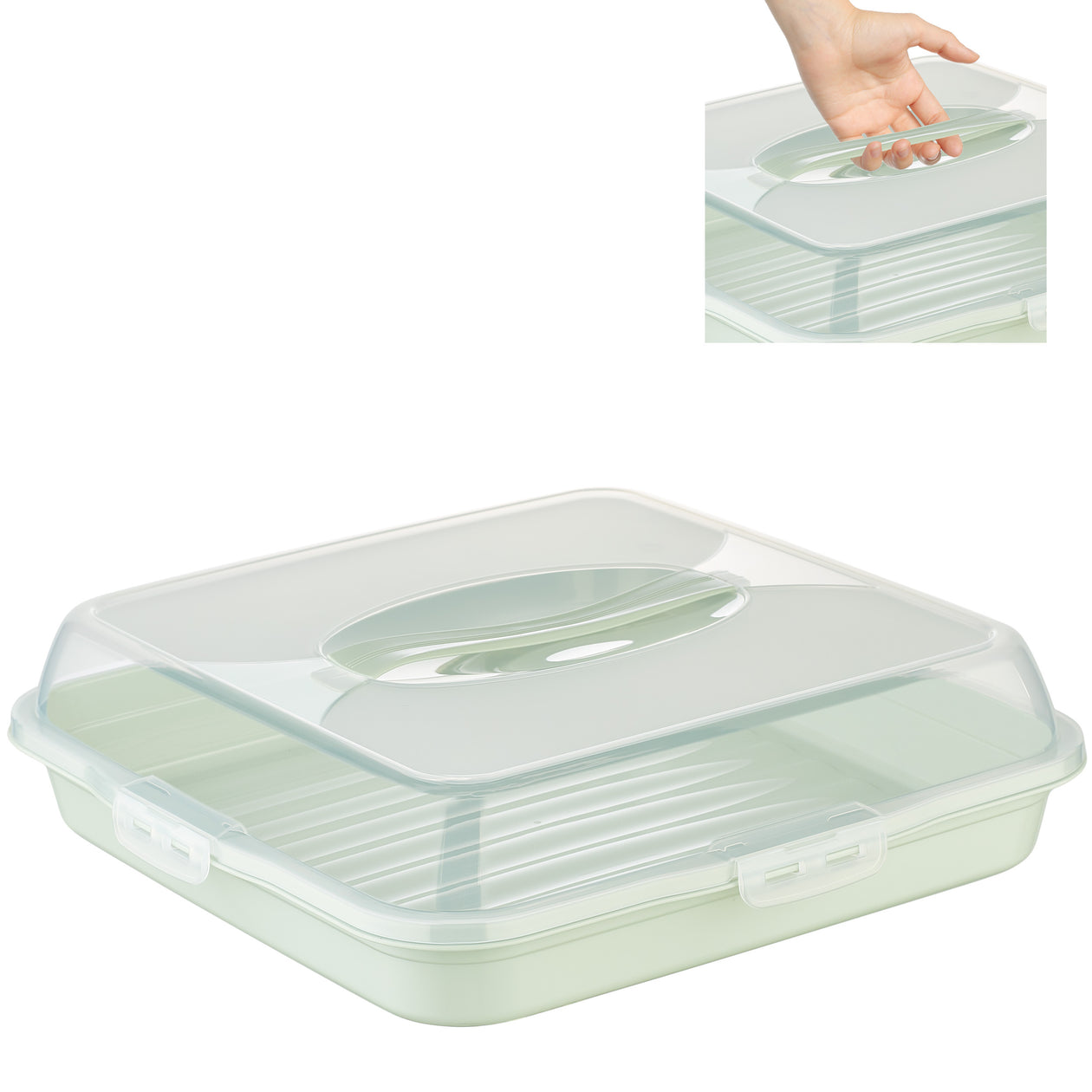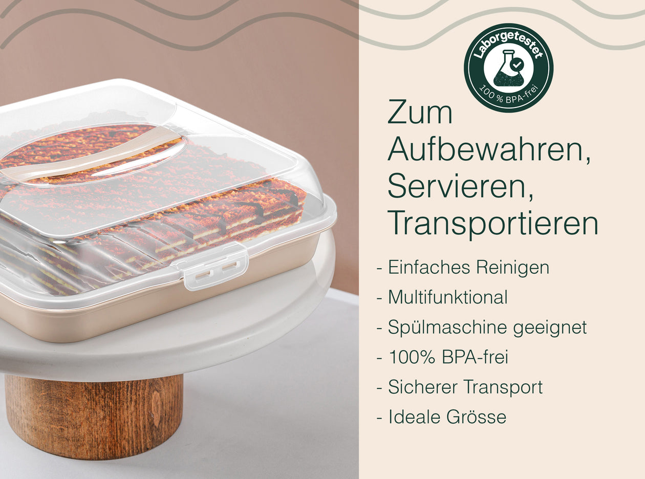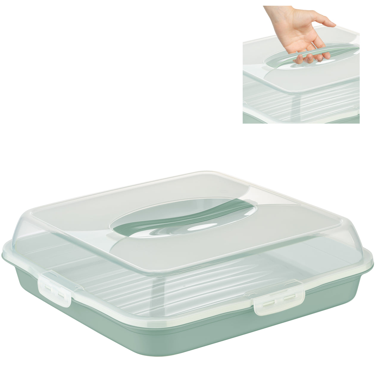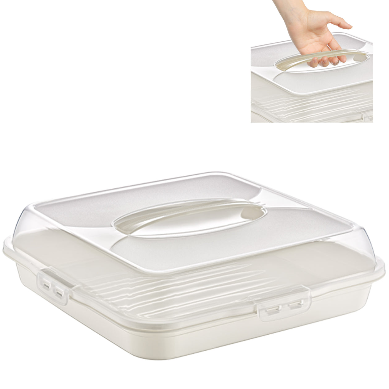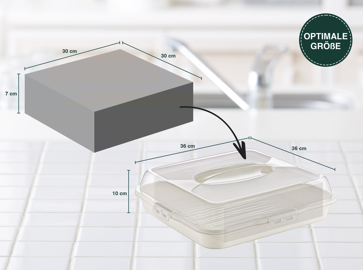 - IDEALE GRÖSSE: Transportbox (Kastenform) für rechteckige Torten und Kuchen, mit Klick-Verschluss und Tragegriff. Die Kuchenplatte mit Deckel ist auch als Aufbewahrungsbox super geeignet. Mit dem Klick- Verschluss sind ihre Kuchen in der Dose geschützt.