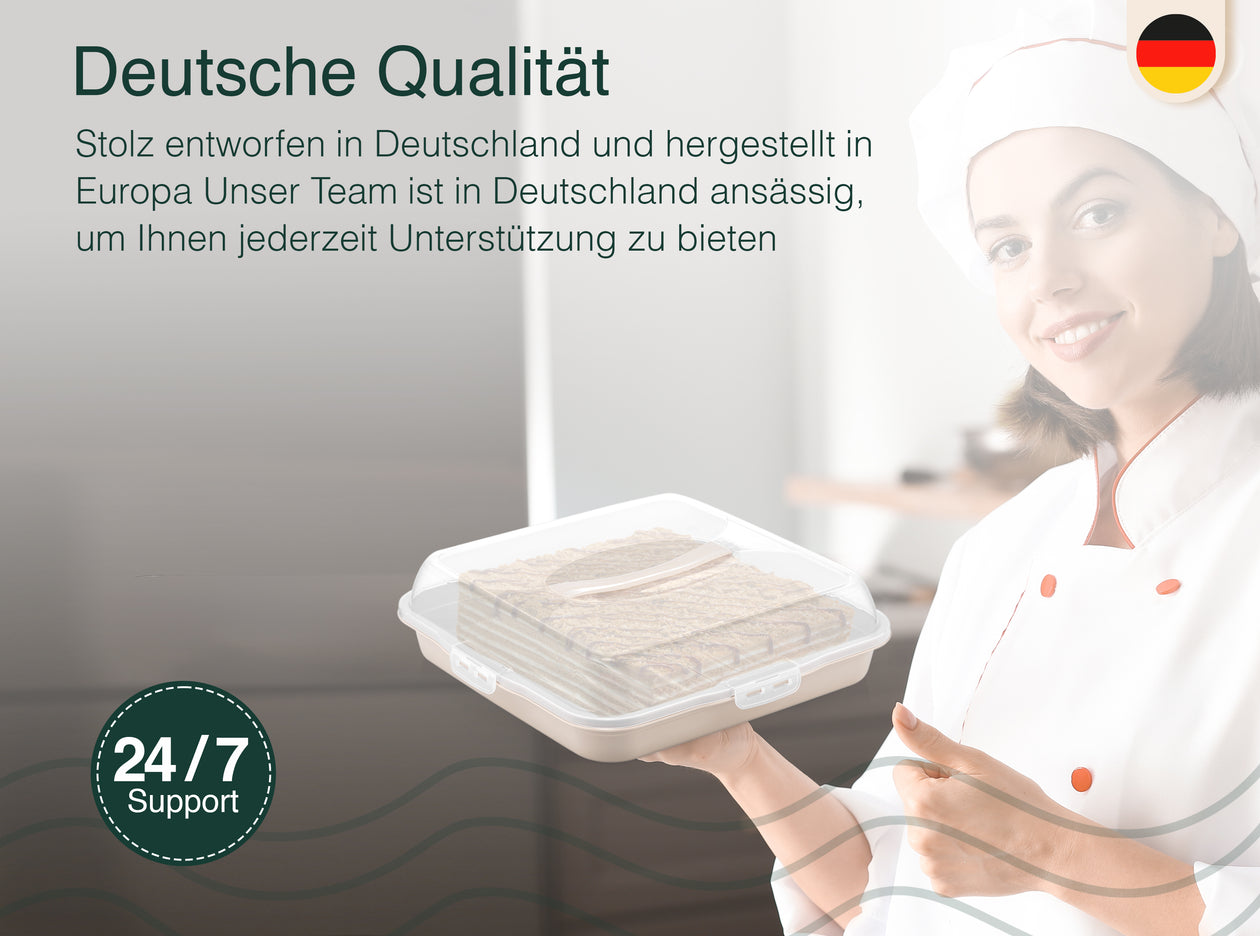 - EINFACHE REINIGUNG: Unsere Kuchenbehälter quadratisch sind aus hochwertigem, spülmaschinengeeignetem Material gefertigt. Das bedeutet, dass Sie sie nach Gebrauch bequem in Ihrer Spülmaschine reinigen können. Kein aufwendiges Handspülen mehr!