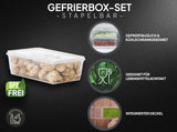 Entdecken Sie unser vielseitiges Gefrierboxen-Set, ideal für die sichere Aufbewahrung und Frischhaltung Ihrer Lebensmittel. Dieses Set besteht aus hochwertigen Aufbewahrungsdosen mit Deckel, die speziell entwickelt wurden, um Ihre Vorräte frisch zu halten, egal ob im Kühlschrank oder im Gefrierschrank.