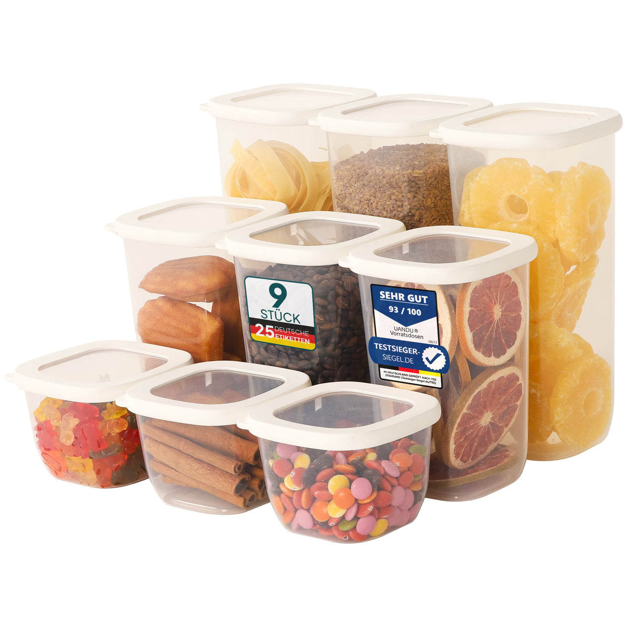 - PASSENDE AUFBEWAHRUNG GRÖSSE: Dieses Produkt Aufbewahrungsbehälter Küche enthält 3x550ml + 3x1200ml + 3x1750ml insgesamt 9 Vorratsbehälter. Aufbewahrungsbox küche.Die Behälter der uandu Aufbewahrungsdosen sind Spülmaschinenfest. Tupperdosen set, organizer küche, küche aufbewahrung & organisation.