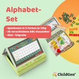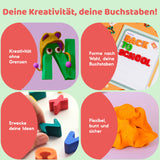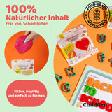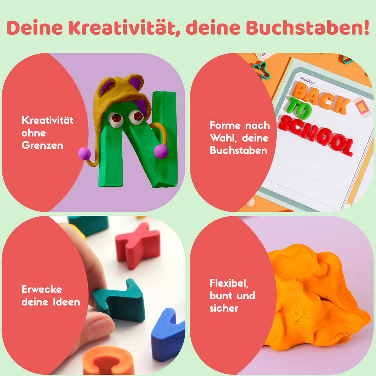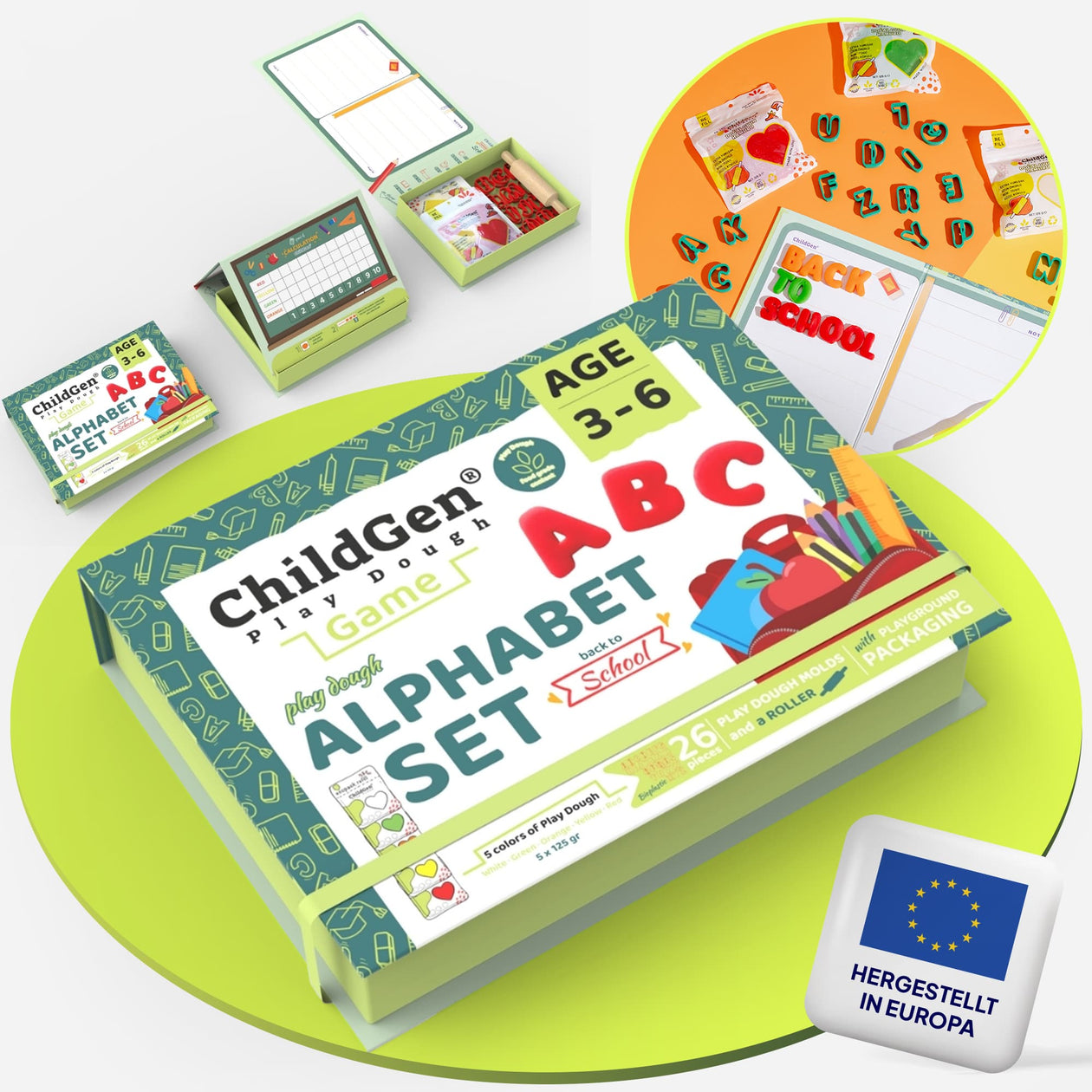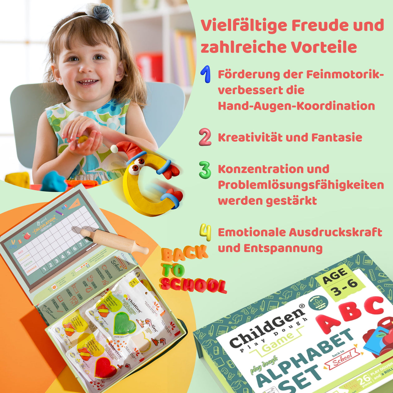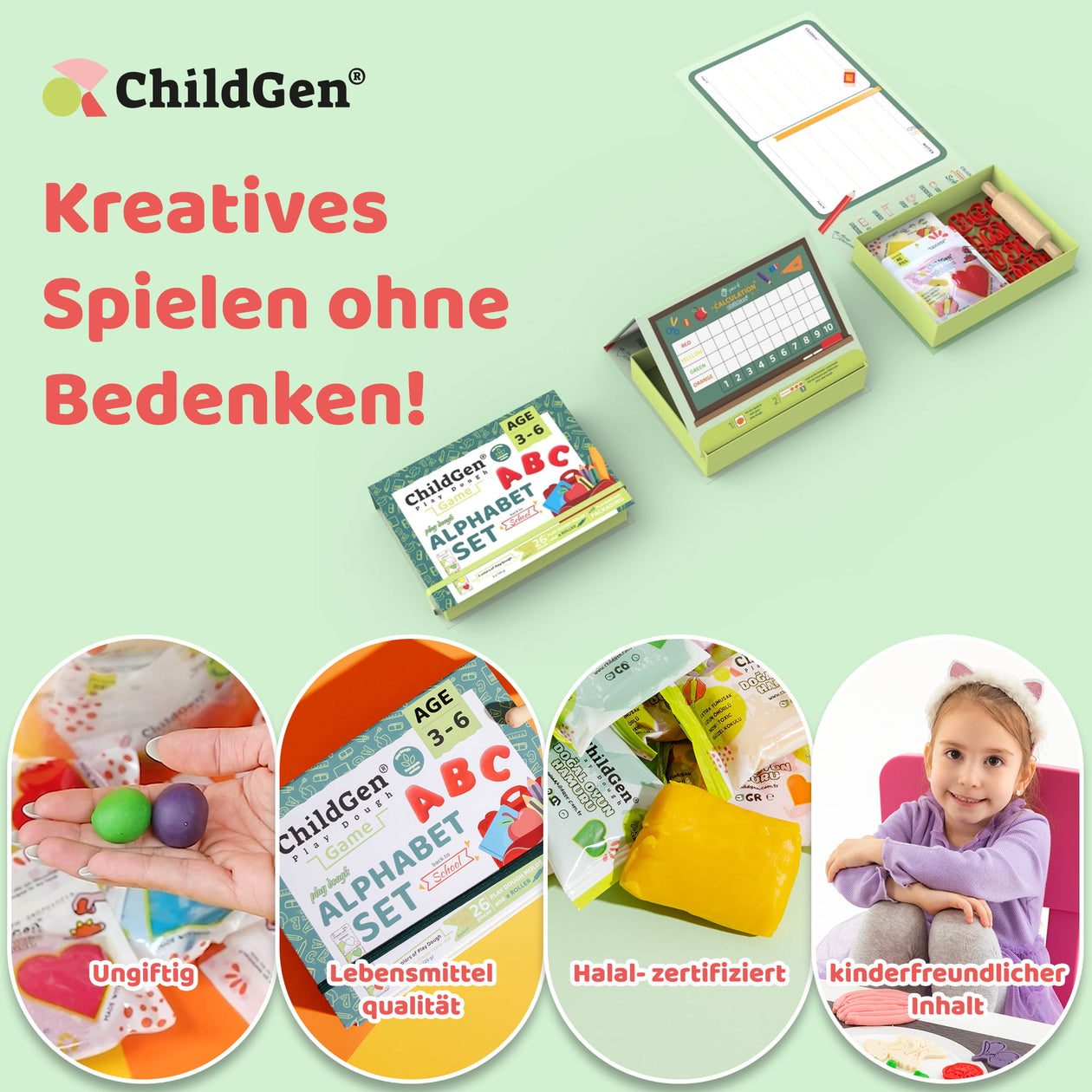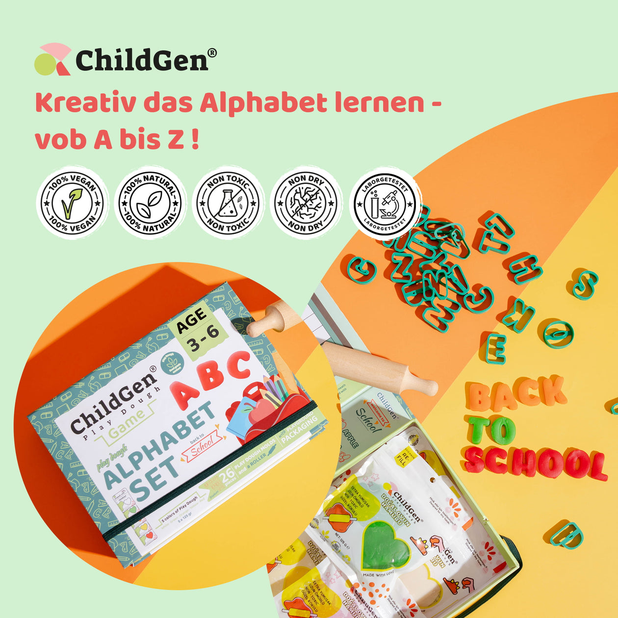 Das ChildGen Alphabet Set fördert die Sprachentwicklung und Feinmotorik von Kindern durch spielerisches Erlernen des Alphabets. Das Set enthält 26 Ausstechformen in Buchstabenform, sodass Kinder alle Buchstaben des Alphabets nachbilden können. Mit der Mini Teigrolle können sie ihre Knetmasse ausrollen, bevor sie die Buchstaben ausstechen. Die enthaltenen Knetmassen (jeweils 125 g) bieten genug Material, um viele kreative Kreationen zu gestalten. Dieses Set ist eine tolle Möglichkeit, das ABC zu lernen und gleichzeitig die Fantasie und Handfertigkeit zu fördern.
