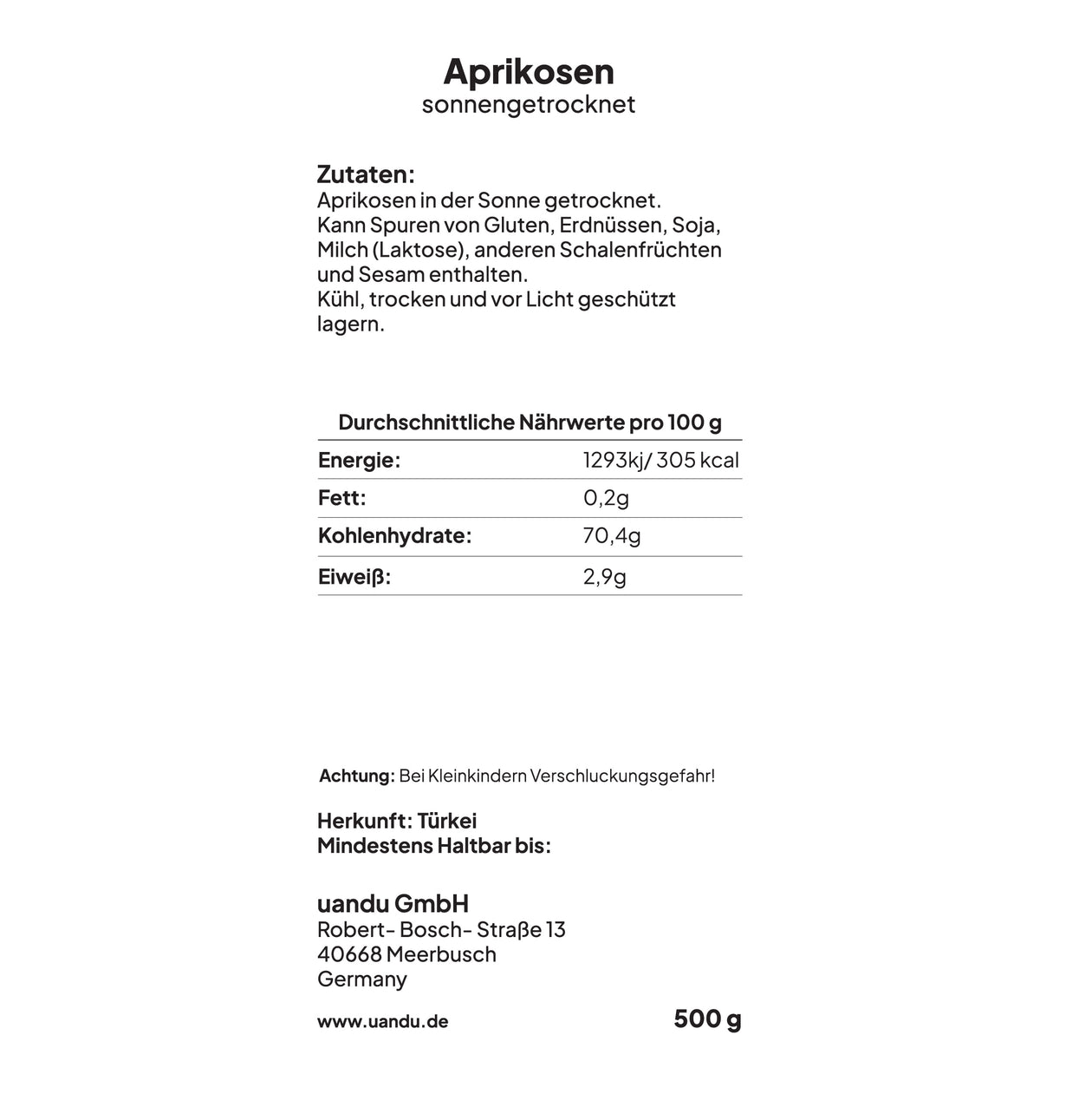 Beschreibung: Sonnengetrocknete Aprikosen sind reife Aprikosenfrüchte, die durch die natürliche Einwirkung der Sonne getrocknet wurden. Sie sind süß, haben eine weiche Konsistenz und behalten ein intensives Aprikosenaroma. Diese getrockneten Früchte sind ein beliebter Snack, eine köstliche Zutat in Müslis, Salaten oder Backwaren und werden oft für ihre natürliche Süße geschätzt.