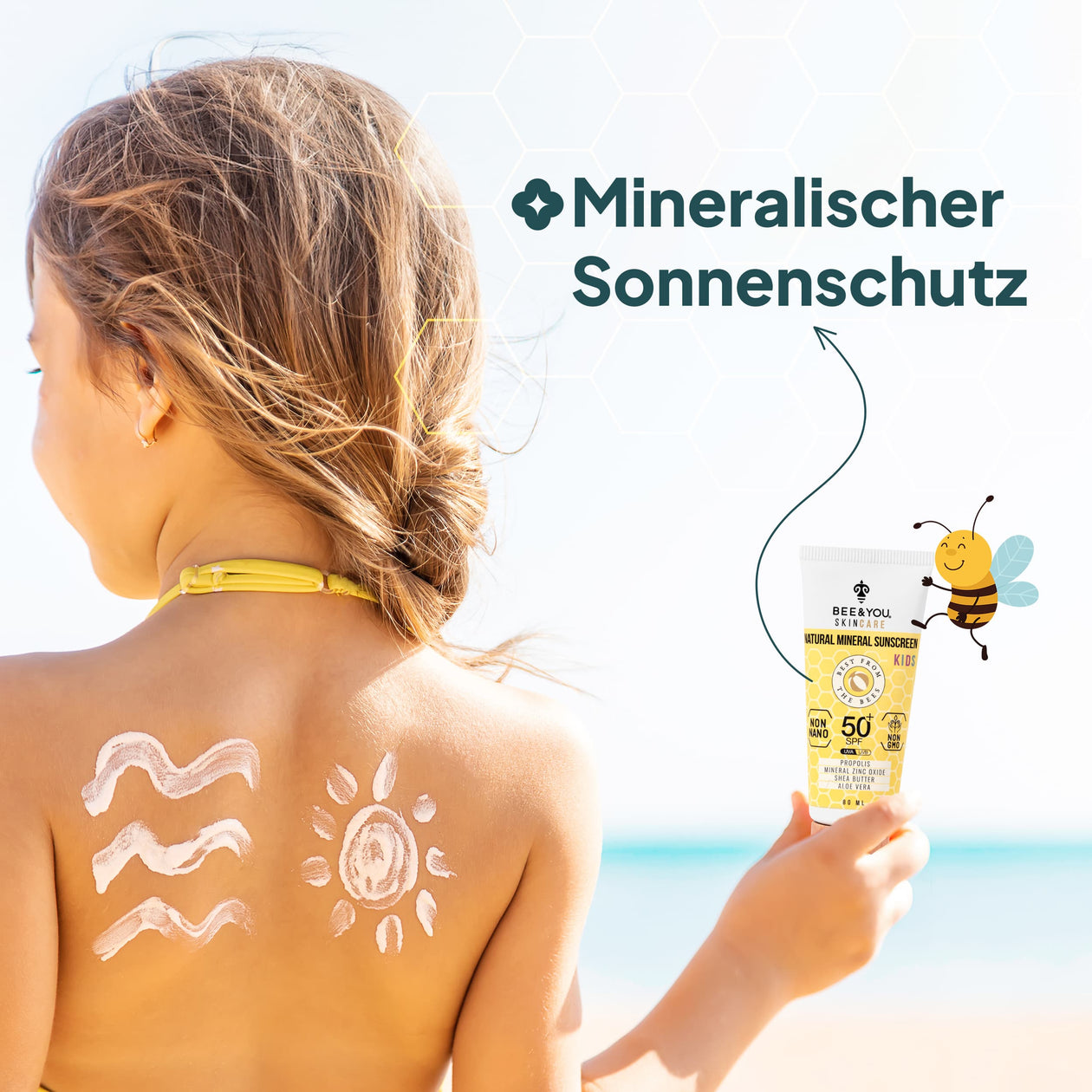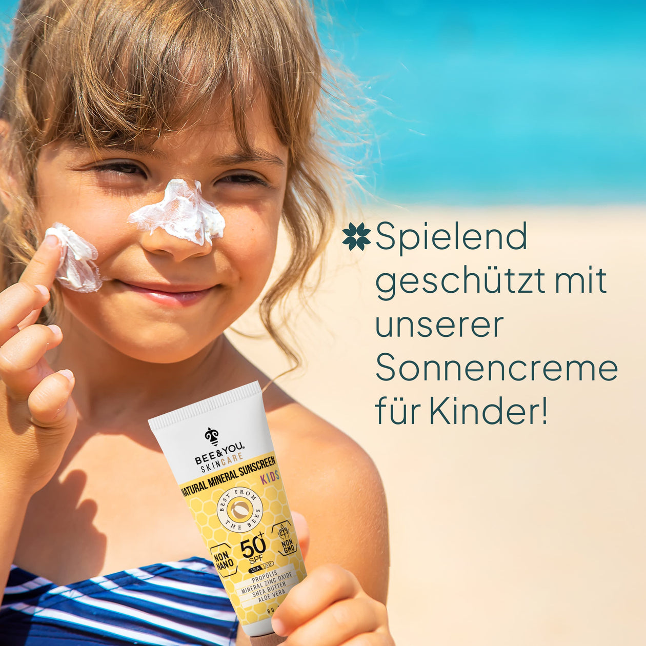 Unsere Sonnenschutzcreme bildet eine transparente Schicht auf der Haut und enthält das patentierte Nano-Zink-Mineral, das keine weißen Rückstände hinterlässt. Die Kombination aus Propolis, mineralischem Zink und rohem honig bildet eine schützende Barriere gegen UV-Strahlen und versorgt die Haut mit wichtigen Nährstoffen, einschließlich des natürlichen Flavonoids Chrysin aus Propolis, das vor schädlichen Sonnenstrahlen schützt und der sonnenbedingten Hautalterung vorbeugt.