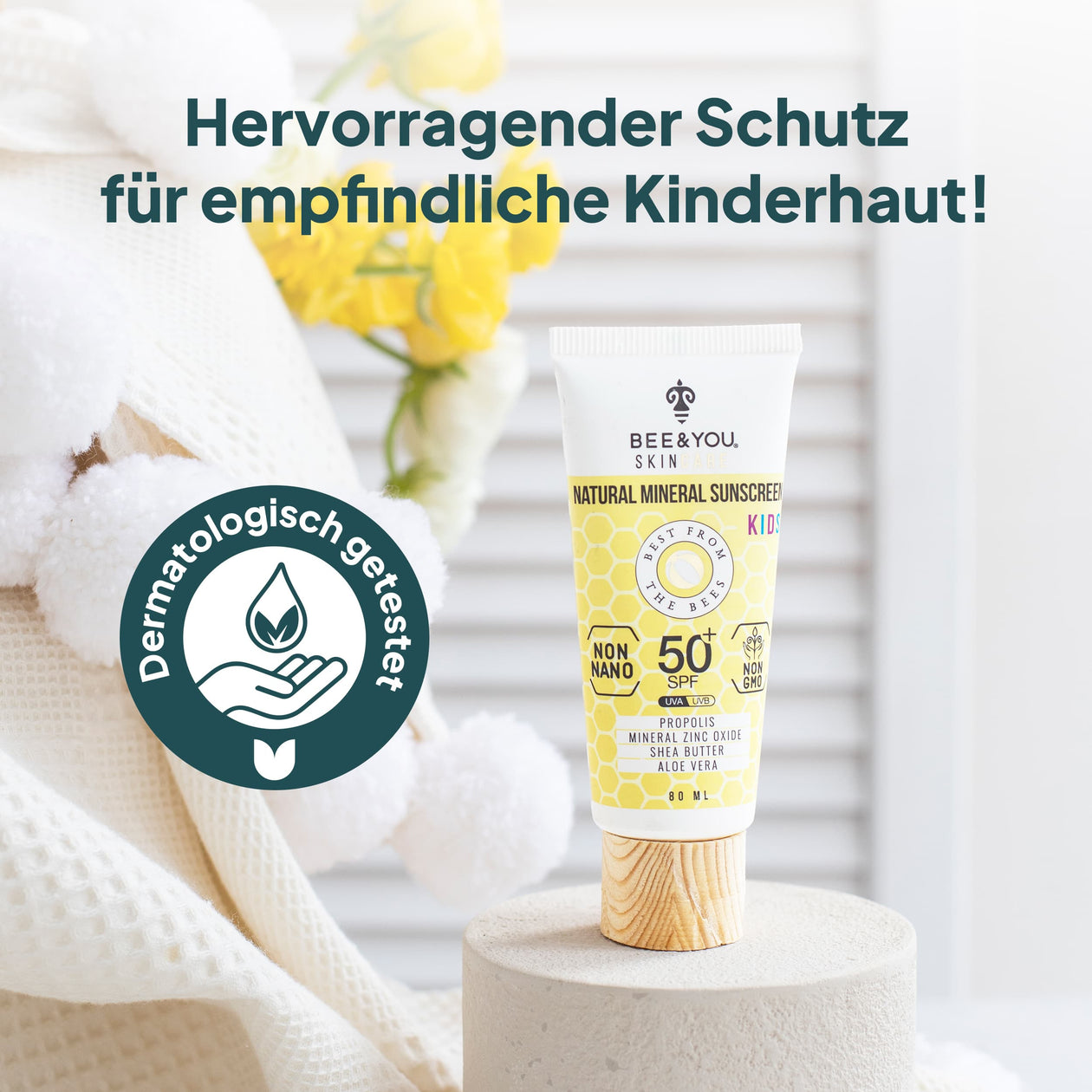 Die hypoallergene Formel macht sie auch für empfindliche Kinderhaut geeignet. Die Kombination von reinem anatolischen Propolis und mineralischem Zink schützt die Haut effektiv und pflegt sie gleichzeitig mit Sheabutter und Vitamin B5. Die patentierte und völlig natürliche Formel enthält keine chemischen Filter, Parabene oder Farbstoffe und ist somit für alle Hauttypen geeignet.