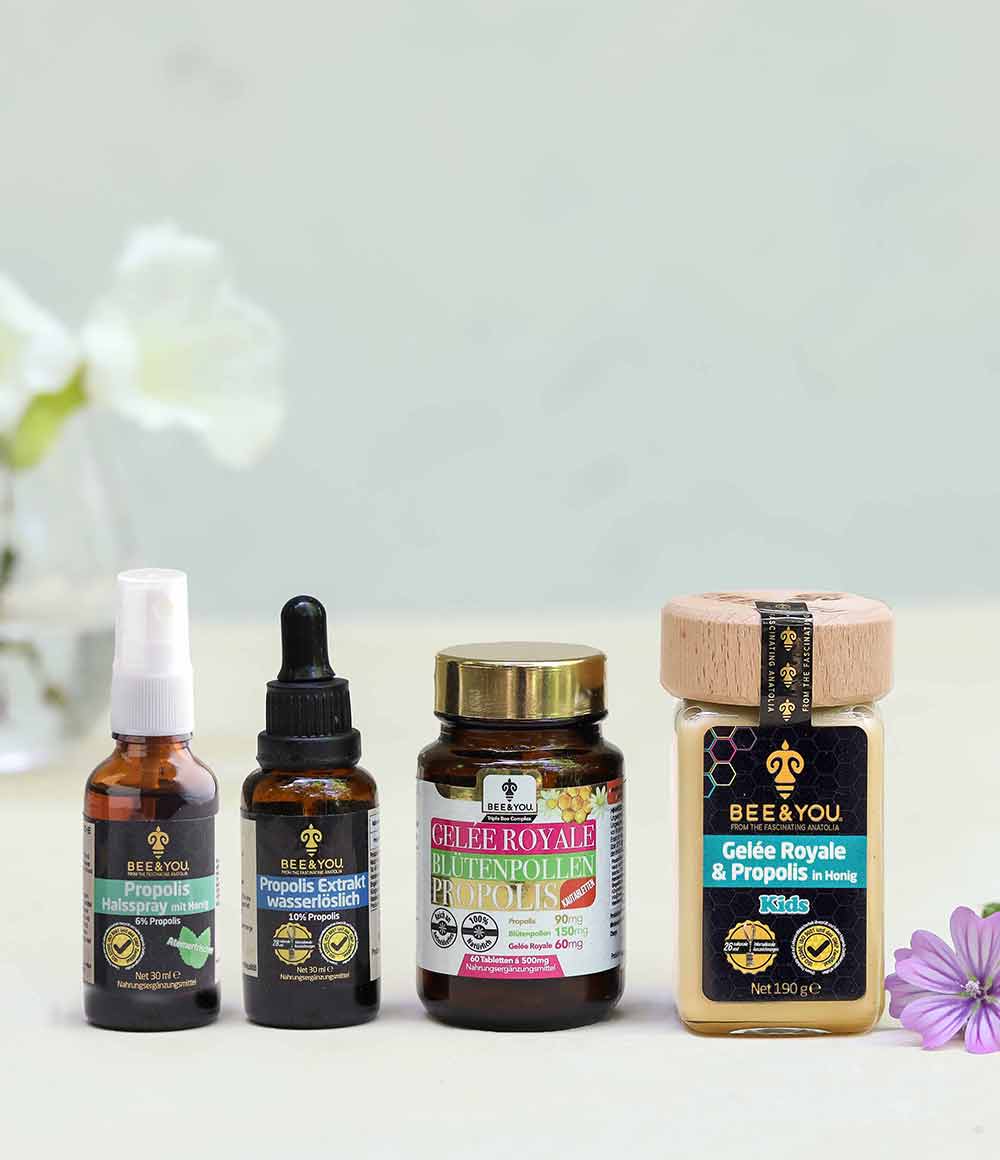 Das Kinder- Paket enthält 4 Bienenprodukte zur Unterstützung der normalen Funktion des Immunsystems.