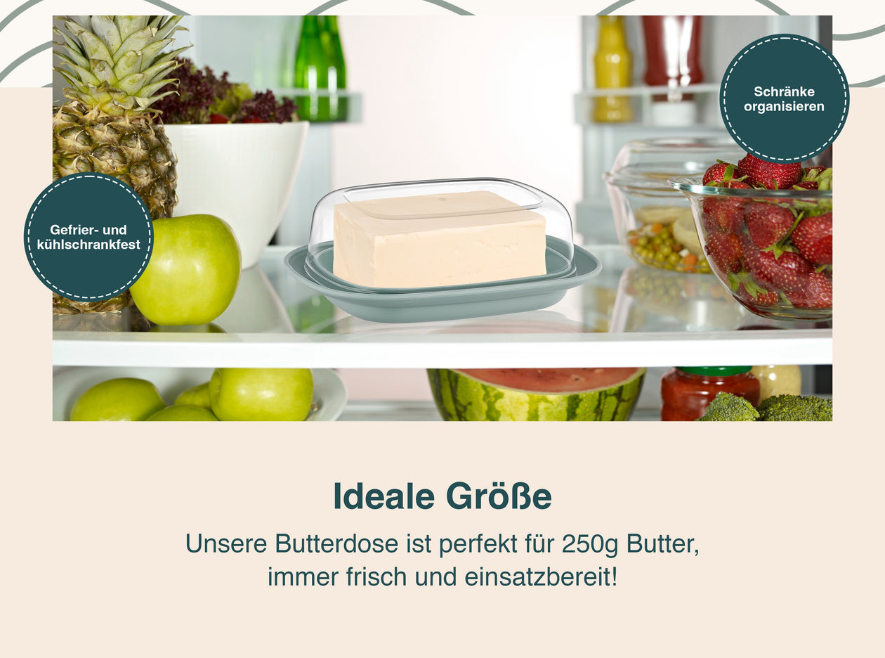 - Funktional und praktisch: Butter Dosen sind perfekt für den Einsatz zu Hause oder beim Picknick, um die Butter frisch zu halten. Kleine Butterdose passt in jeden Kühlschrank.