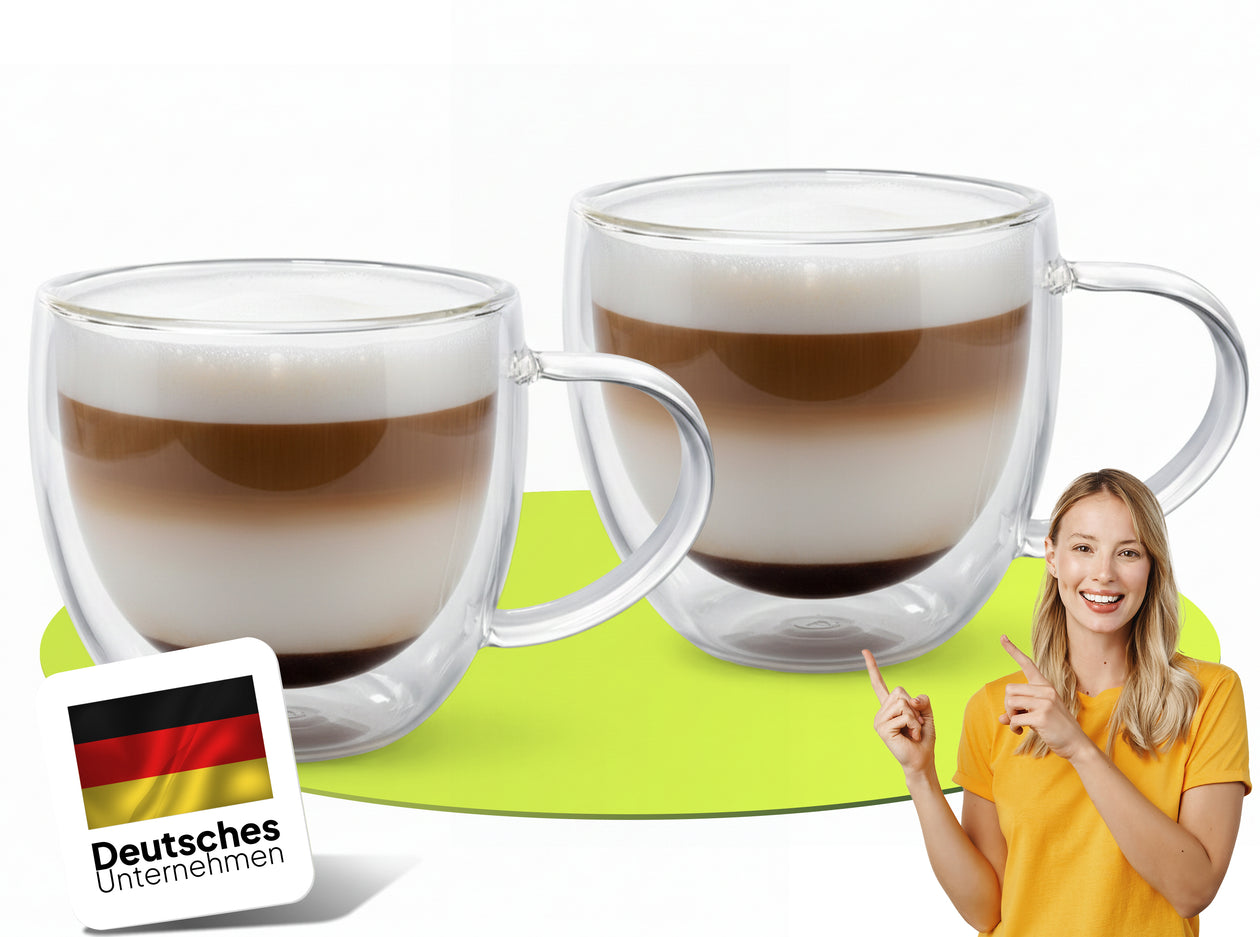 doppelwandige Glas Set 2x250ml mit handle
