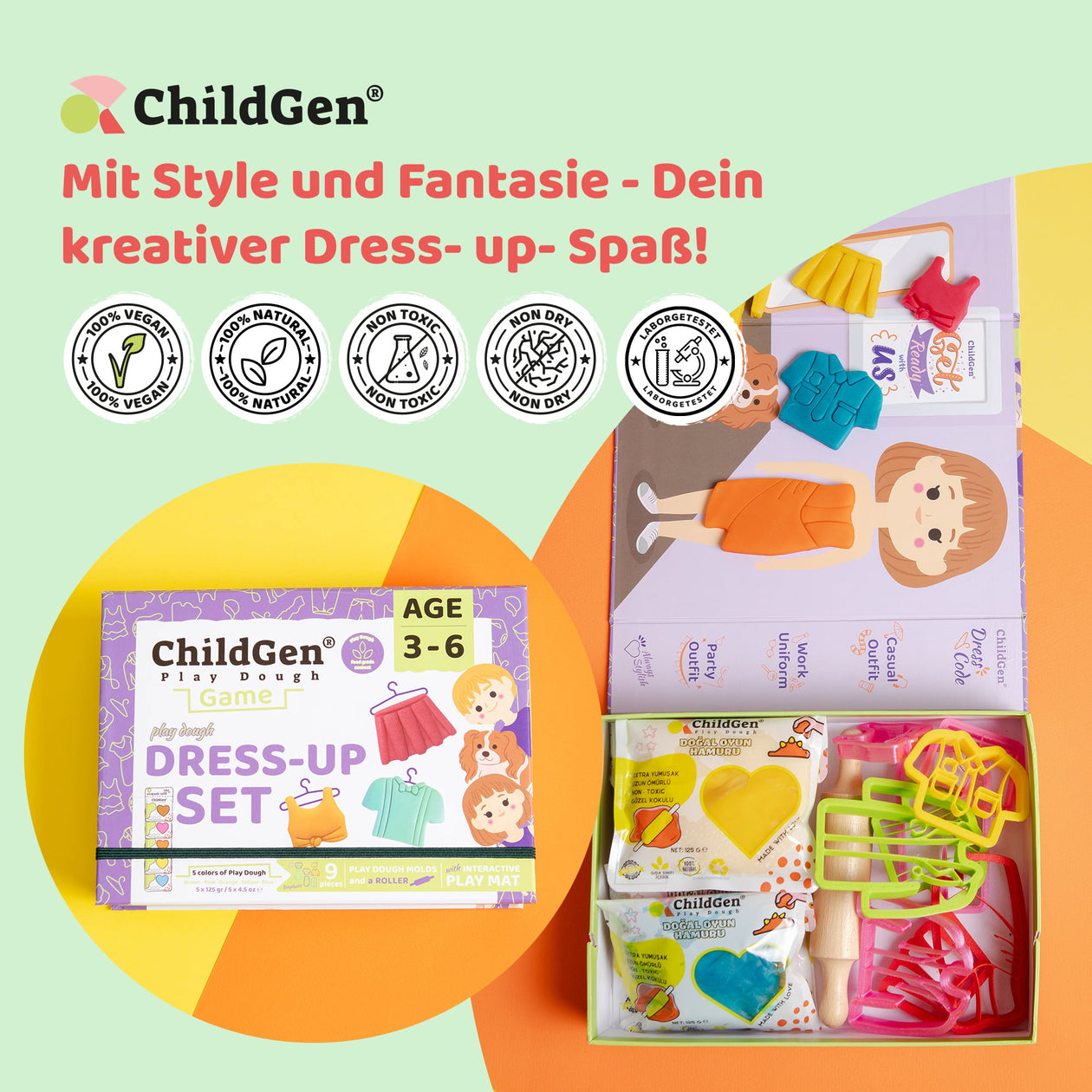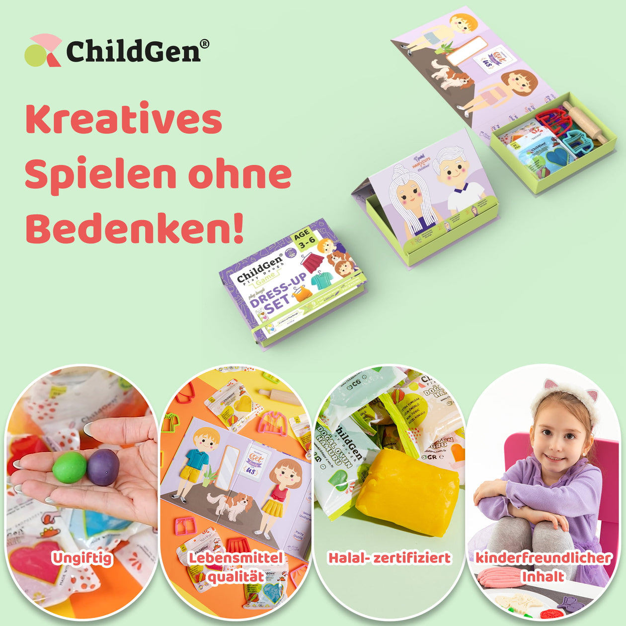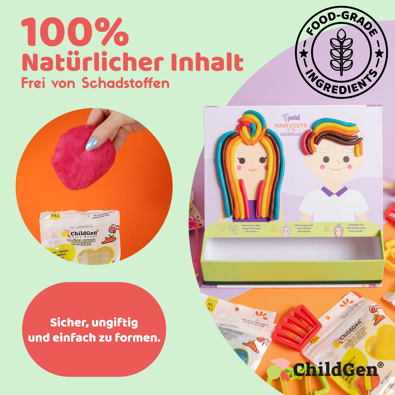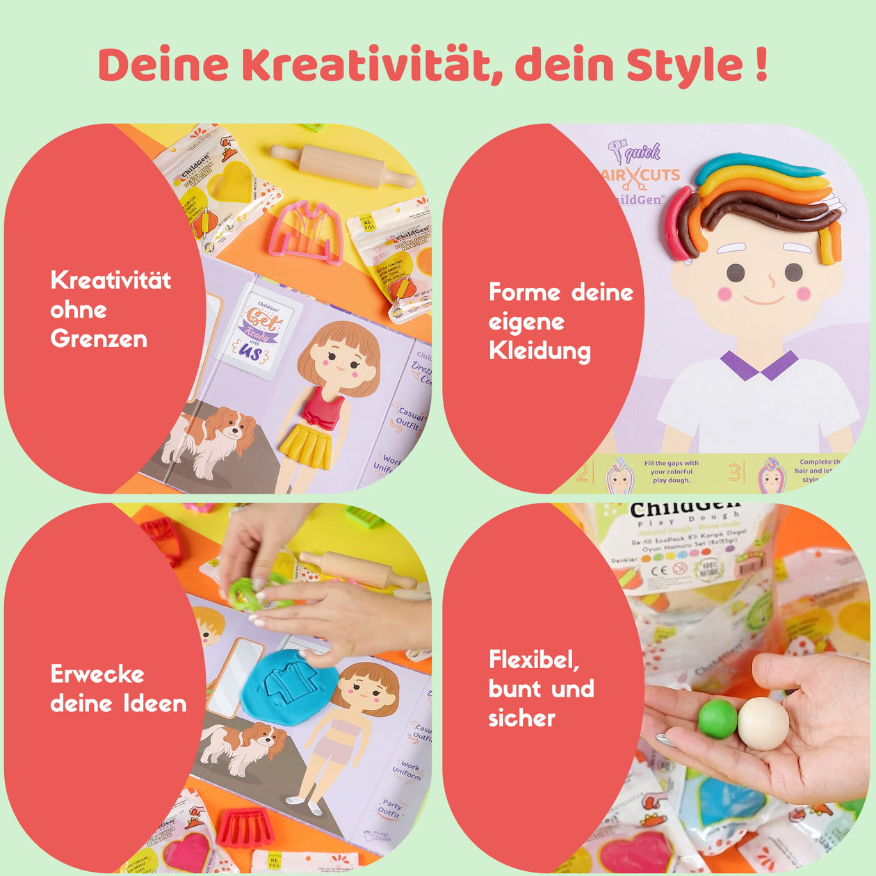 ChildGen Play Dough bietet Ihnen und Ihren Kindern gesunde, kreative und nachhaltige Spielmaterialien, die die Fantasie anregen und gleichzeitig eine positive Wirkung auf die Entwicklung der Kinder haben.