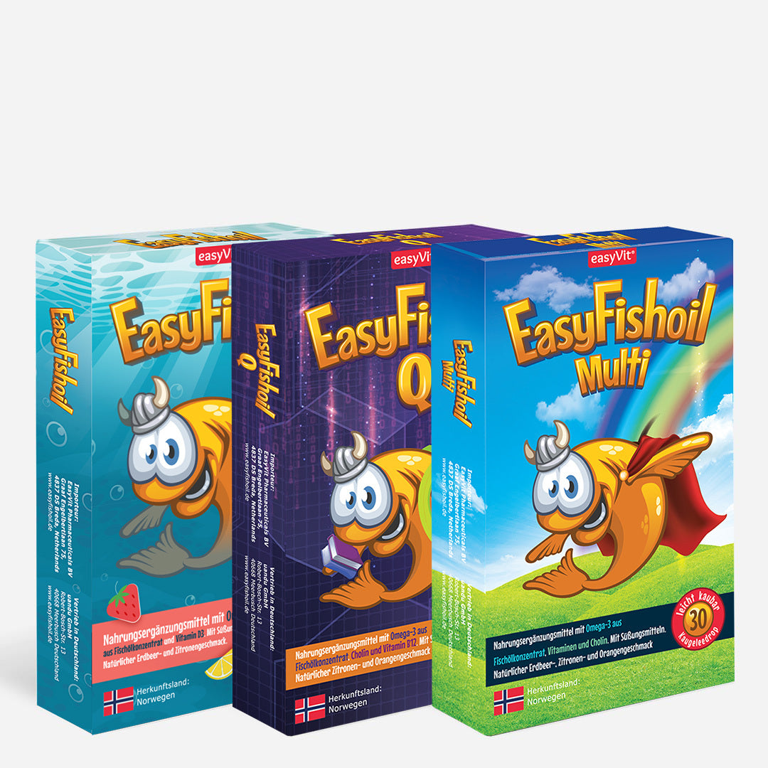 Das EasyFishoi - Omega 3 Multipack bietet eine Auswahl von drei Sorten Omega-3 Kaudrops, die EPA und DHA enthalten und mit verschiedenen Vitaminen angereichert sind. Diese köstlichen Fruchtgummis sind speziell als Nahrungsergänzungsmittel für Kinder konzipiert und machen die Einnahme von wichtigen Nährstoffen einfach und lecker.