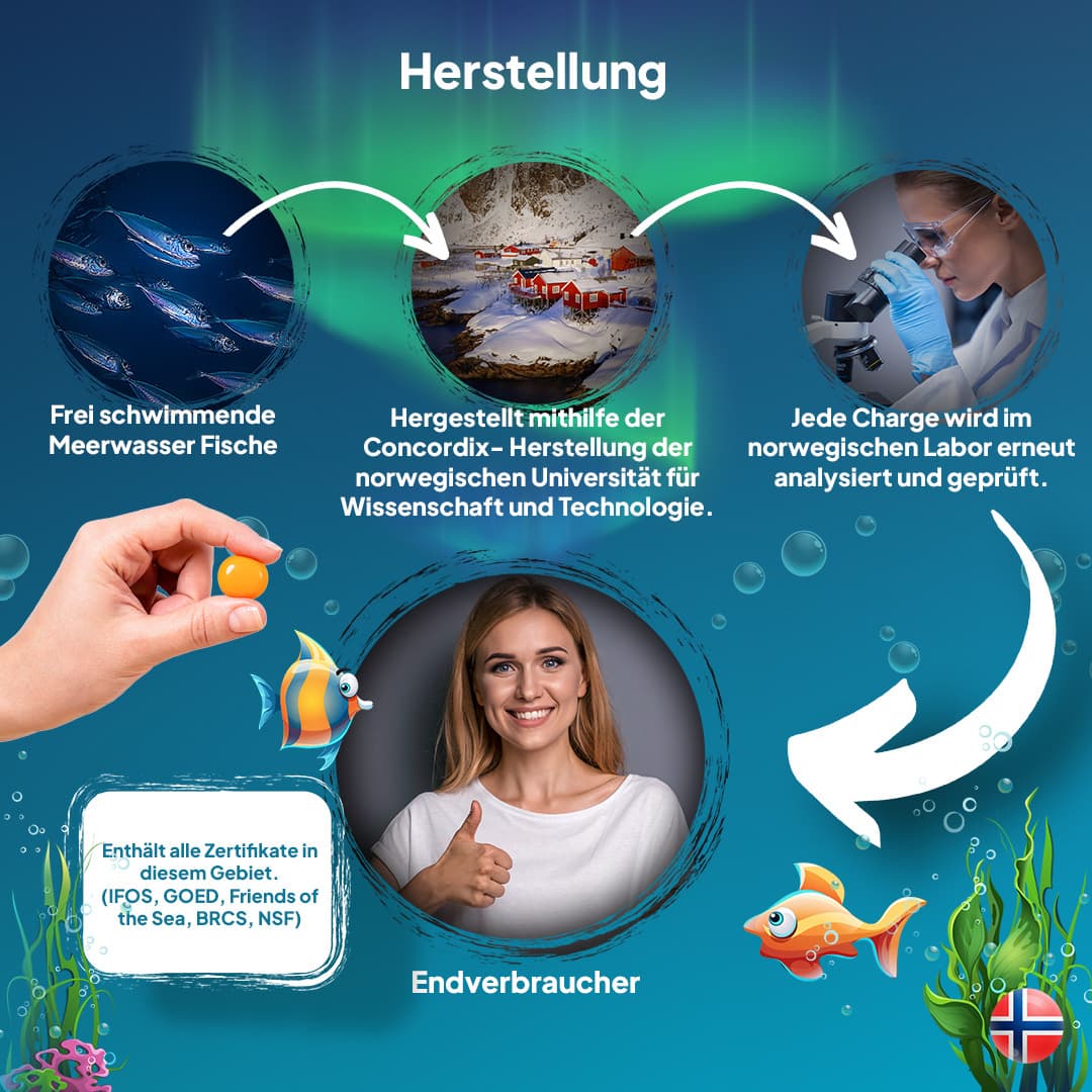 EasyFishoil - Omega-3 Fischöl Kaudrops werden in Norwegen unter Verwendung der innovativen ConCordix®-Herstellung nach globalen Standards hergestellt.