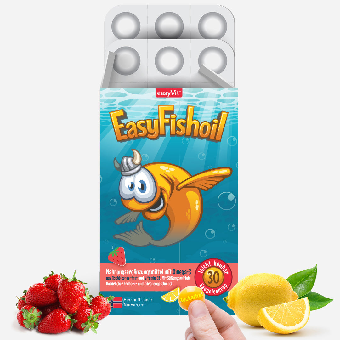 EasyFishoil Vit. D3 mit Erdbeer - und Zitronengeschmack.