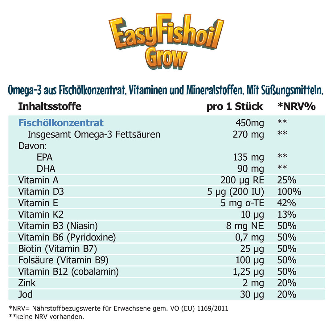 Inhalt & Hinweise für EasyFishoil Grow - Omega 3 Kinder