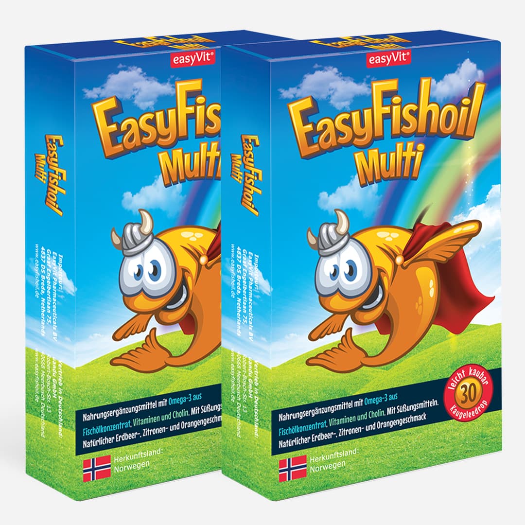 EasyFishoil Multi bietet eine kinderfreundliche Kombination aus Omega-3 EPA und DHA sowie 10 wichtigen Multivitaminen. Diese einzigartige Formel unterstützt spielend leicht die Ernährung von Kindern, um mögliche Nährstofflücken zu schließen und ihre gesunde Entwicklung zu fördern. Die leicht kaubaren, fruchtigen Gels machen die tägliche Einnahme zu einem Genuss.