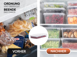 Dank der transparenten Bauweise haben Sie jederzeit einen klaren Blick auf den Inhalt und können die benötigten Lebensmittel schnell und einfach finden. Dieses Set ist perfekt für kleinere Haushalte oder für die Nutzung in gewerblichen Küchen, in denen der Platz begrenzt ist, aber eine hohe Lagerkapazität erforderlich ist.