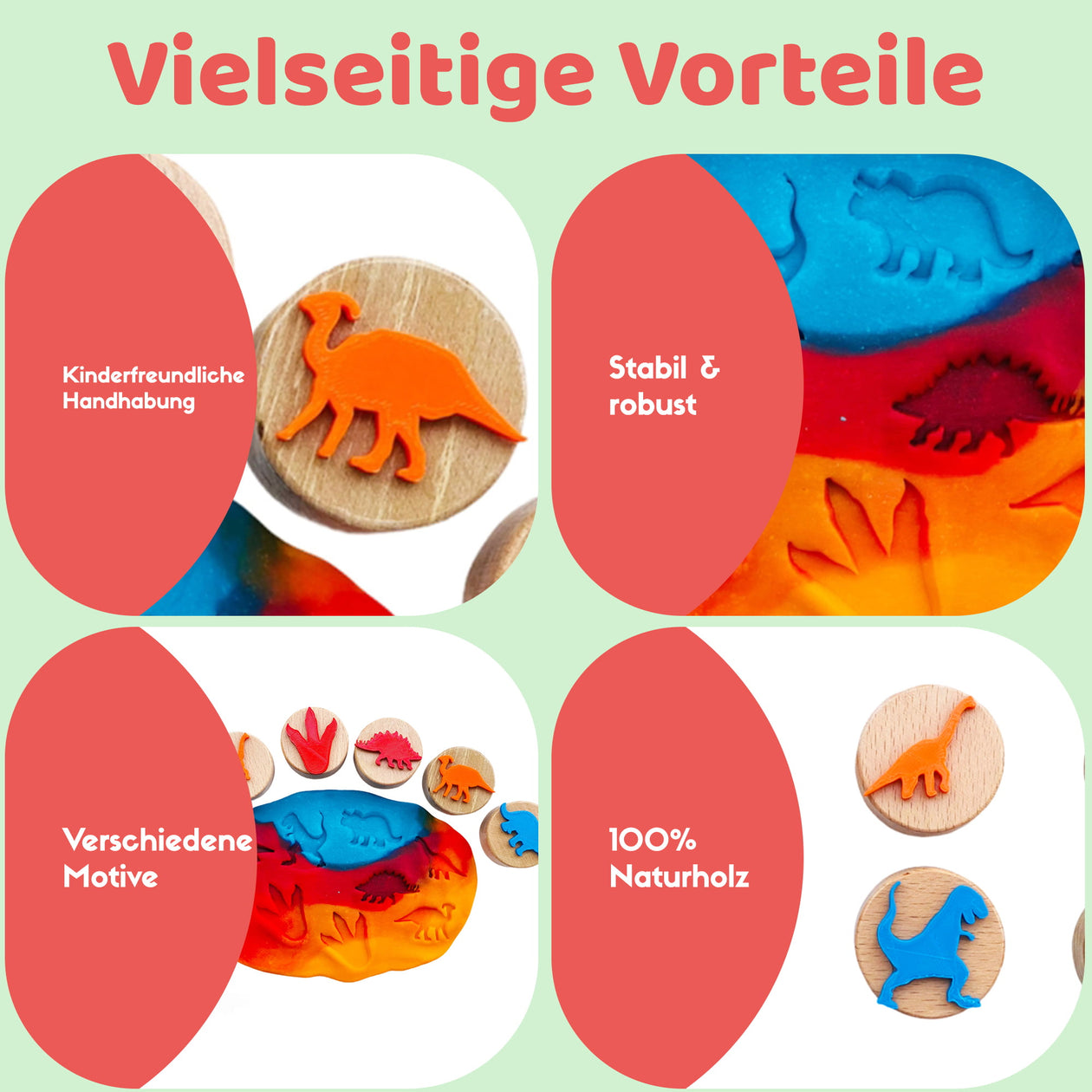 Verleihen Sie Ihrer Knetkunst eine kreative Note mit diesem Set aus 6 Holzstempeln im Dinosaurier-Design. Diese Stempel sind perfekt für das Stempeln von Knete und anderen formbaren Materialien. Jeder Stempel zeigt ein spannendes Motiv aus der Dino-Welt. Die Stempel bestehen aus hochwertigem Holz und sind ergonomisch gestaltet, sodass sie sich leicht bedienen lassen und präzise Abdrücke auf weicher Knete hinterlassen. Ideal für kreative Spielstunden.