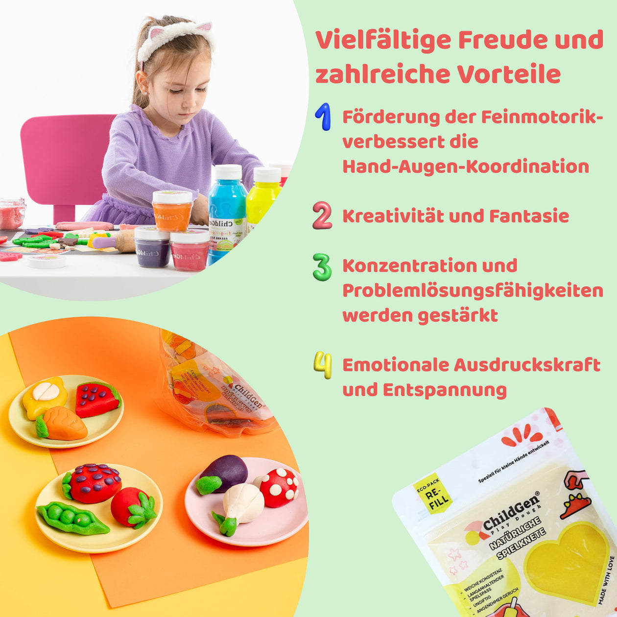 ChildGen Play Dough bietet Ihnen und Ihren Kindern gesunde, kreative und nachhaltige Spielmaterialien, die die Fantasie anregen und gleichzeitig eine positive Wirkung auf die Entwicklung der Kinder haben.