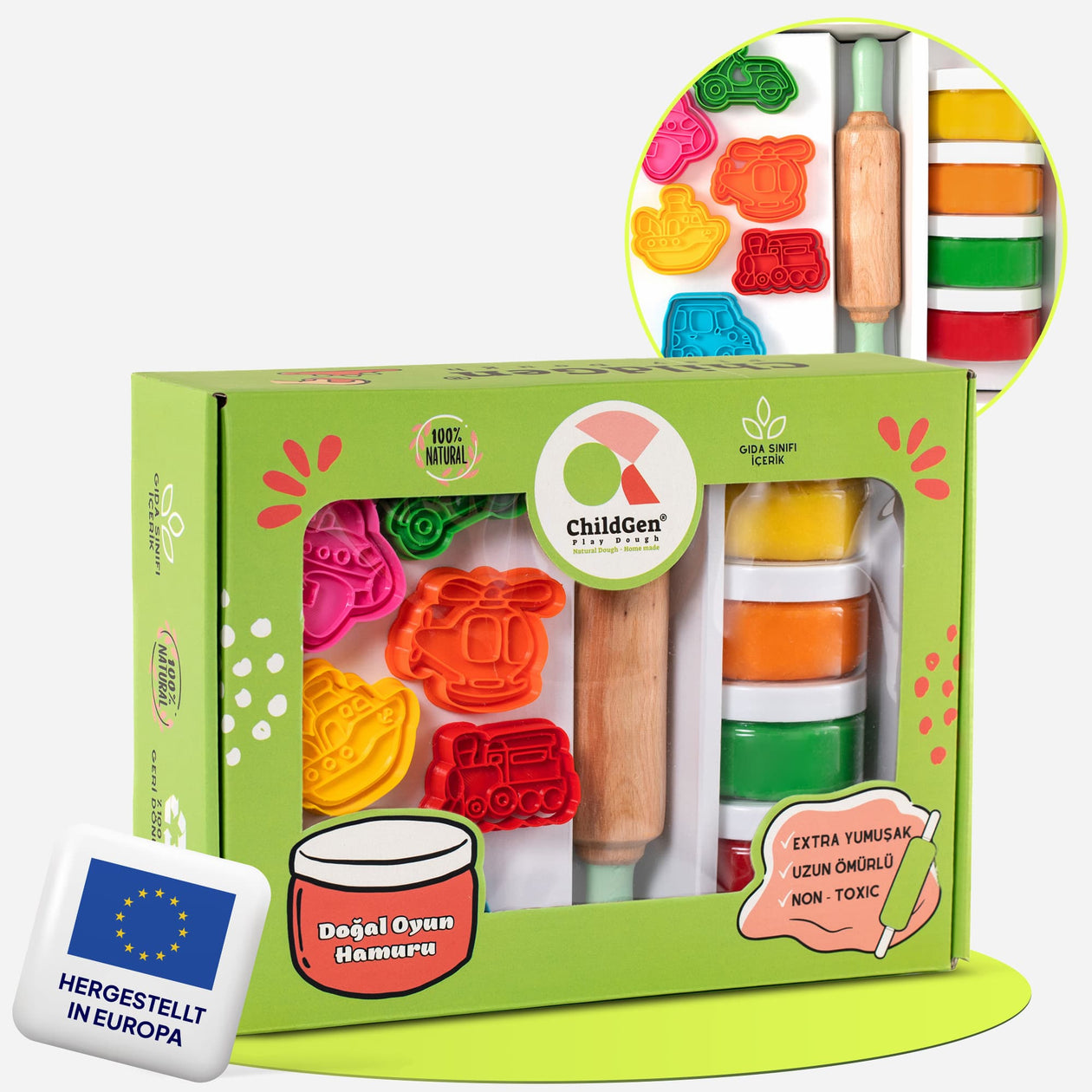 ChildGen Play Dough ist eine Marke, die sich ganz der Förderung der Kreativität und Fantasie von Kindern verschrieben hat. Wir bei ChildGen Play Dough bieten hochqualitative, sichere und spielerische Produkte, die Kindern unendlich viele Möglichkeiten zur künstlerischen Entfaltung und sensorischen Entdeckung bieten. Unsere Spielteige und kreativen Materialien bestehen aus 100 % natürlichen Inhaltsstoffen und wurden mit dem Ziel entwickelt, den höchsten Standards in Sachen Sicherheit und Qualität zu entsprechen.