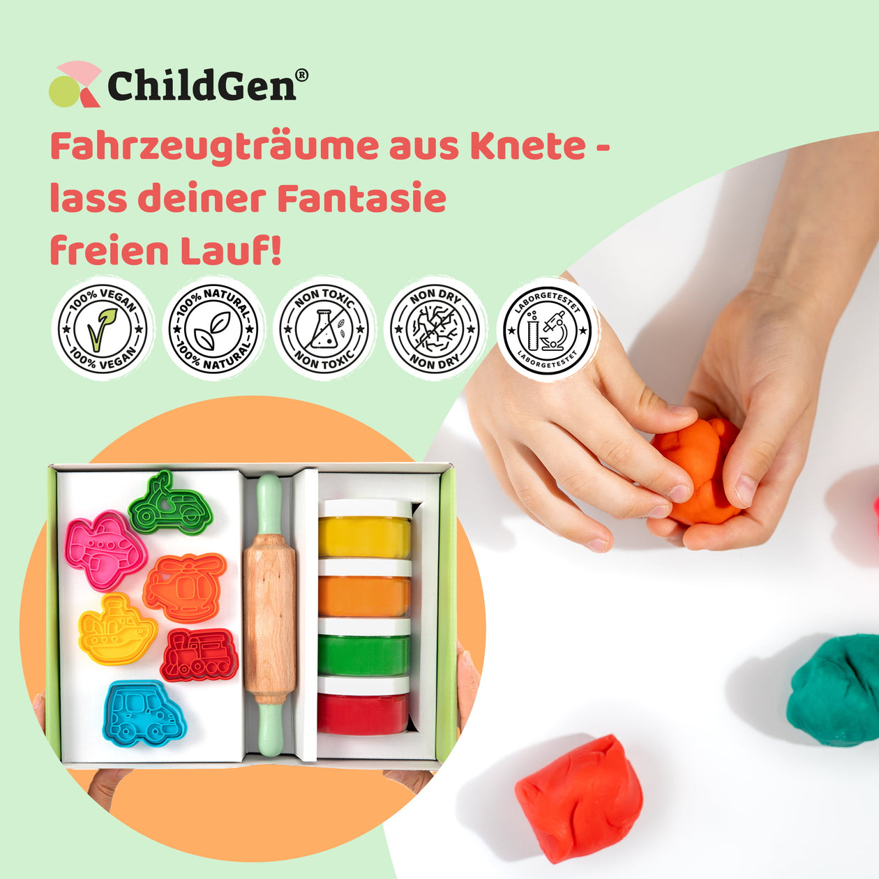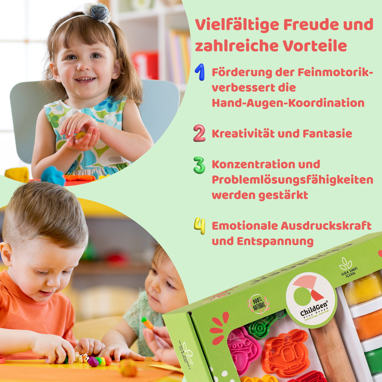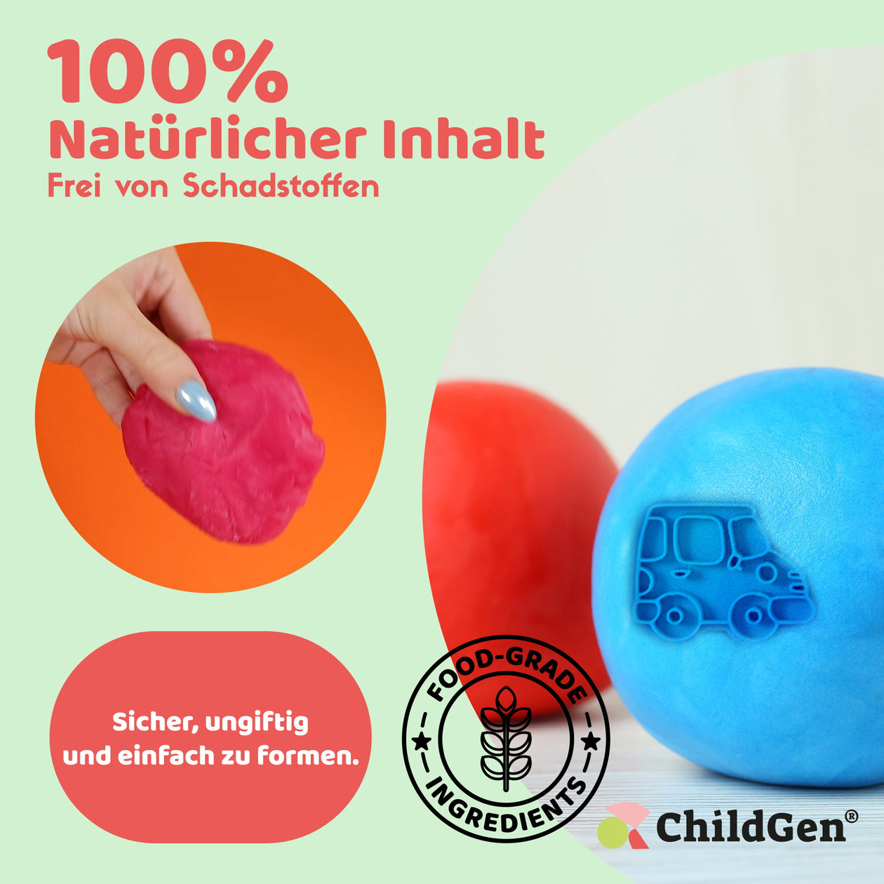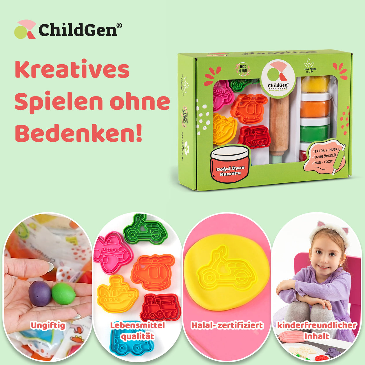 ChildGen Play Dough bietet Ihnen und Ihren Kindern gesunde, kreative und nachhaltige Spielmaterialien, die die Fantasie anregen und gleichzeitig eine positive Wirkung auf die Entwicklung der Kinder haben.