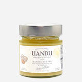 - Mandelpaste vom uandu, völlig frei von Zusatzstoffen, ohne Zucker- und Konservierungsstoffzusatz, gewürzt mit weißer Schokolade und Vanille.