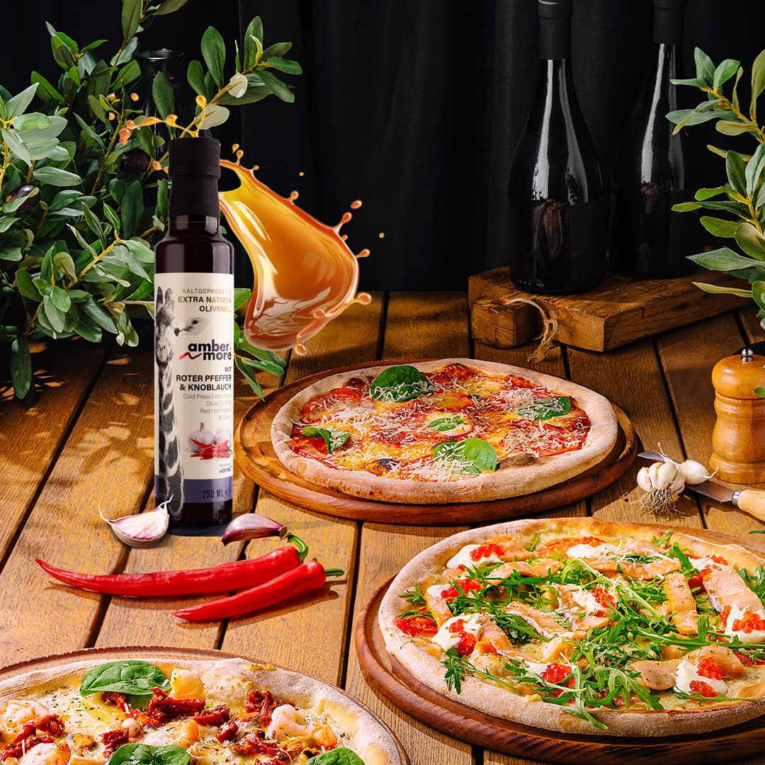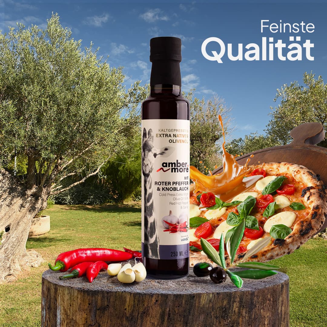 Pizzasoße- scharf, Olivenöl mit roter Pfeffer & Knoblauch- 250 ml
