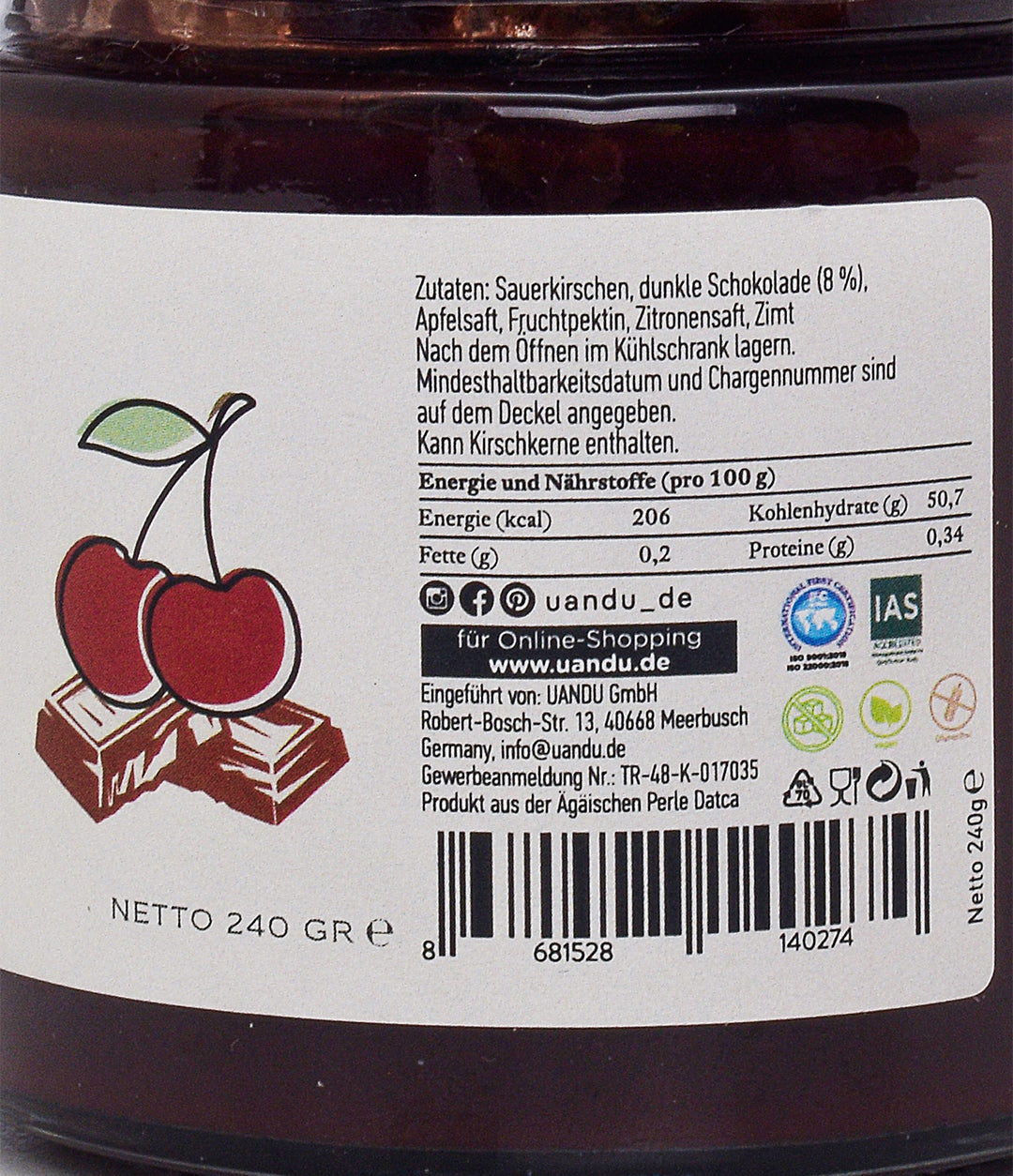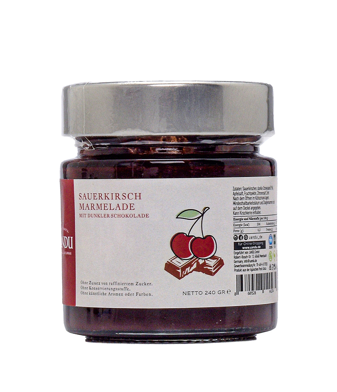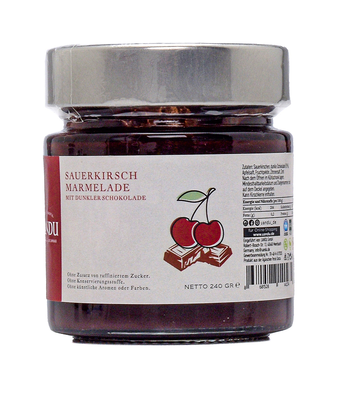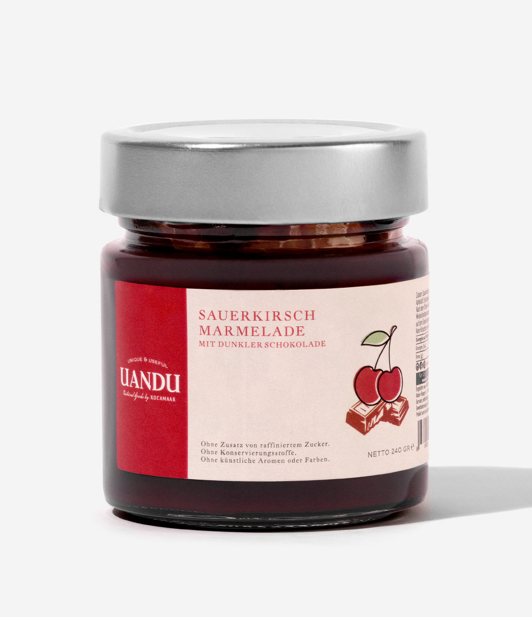 Was ist UANDU Sauerkirsch-Marmelade mit dunkler Schockolade ohne Zuckerzusatz?