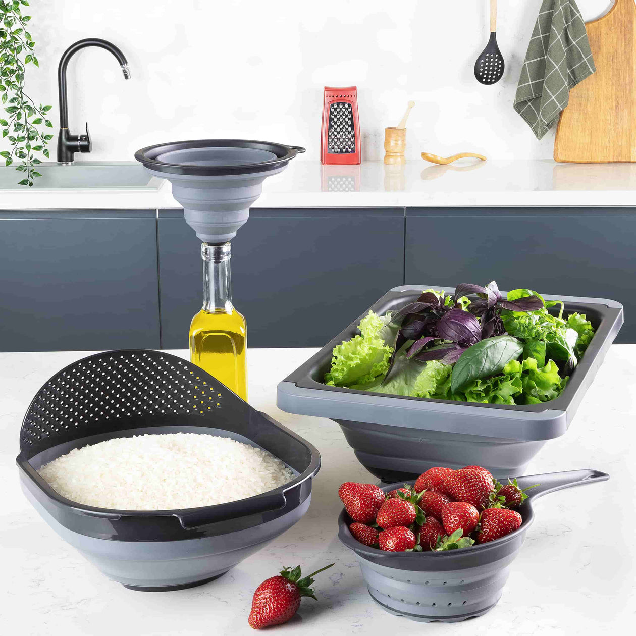 Unsere UANDU Siebe können gefaltet werden,somit sparen sie viel Platz in Ihrer Küche und lassen sich bequem in jeder Schublade, jedem Schrank oder auch Trockenschrank aufbewahren. Unsere UANDU faltbaren Siebe sind ideal für Camping und Picknicks und sonstige Aktivitäten.