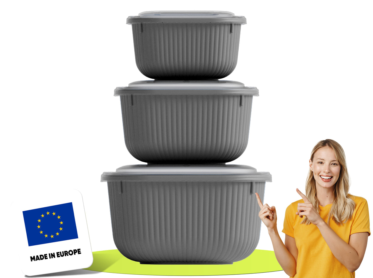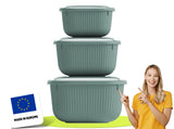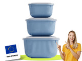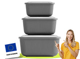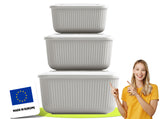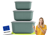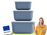 • Behälter aus hitzebeständigem Borosilikatglas – geeignet für Backofen (ohne Deckel), Mikrowelle (ohne Deckel), Kühlschrank und Gefrierfach.