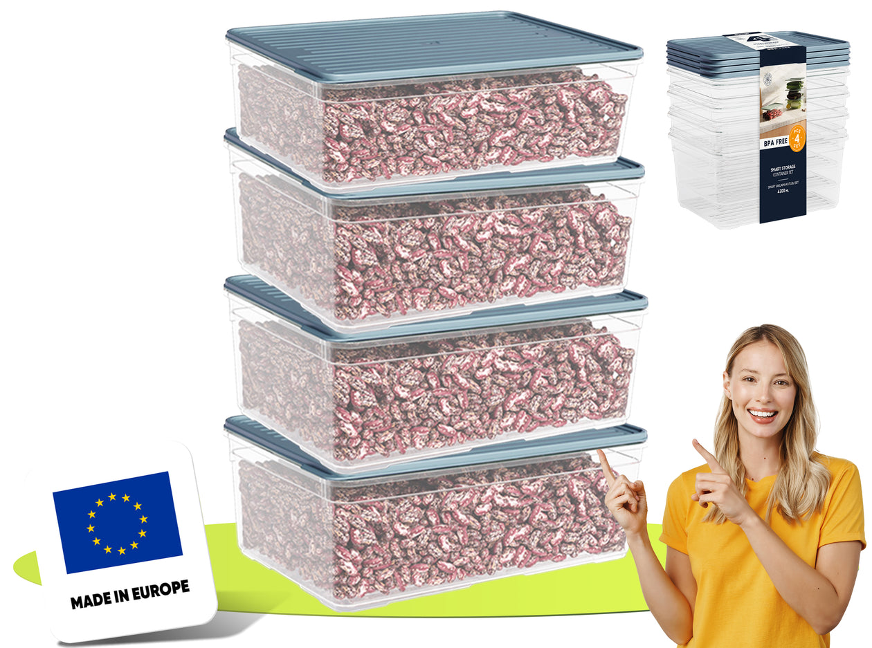 uandu Gefrierbox Set, Frischhaltedosen mit Deckel - 4x3250ml Grün