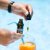 • Die Tinktur kann in Flüssigkeiten wie Wasser, Saft oder Tee gelöst werden, um den Geschmack zu verbessern.