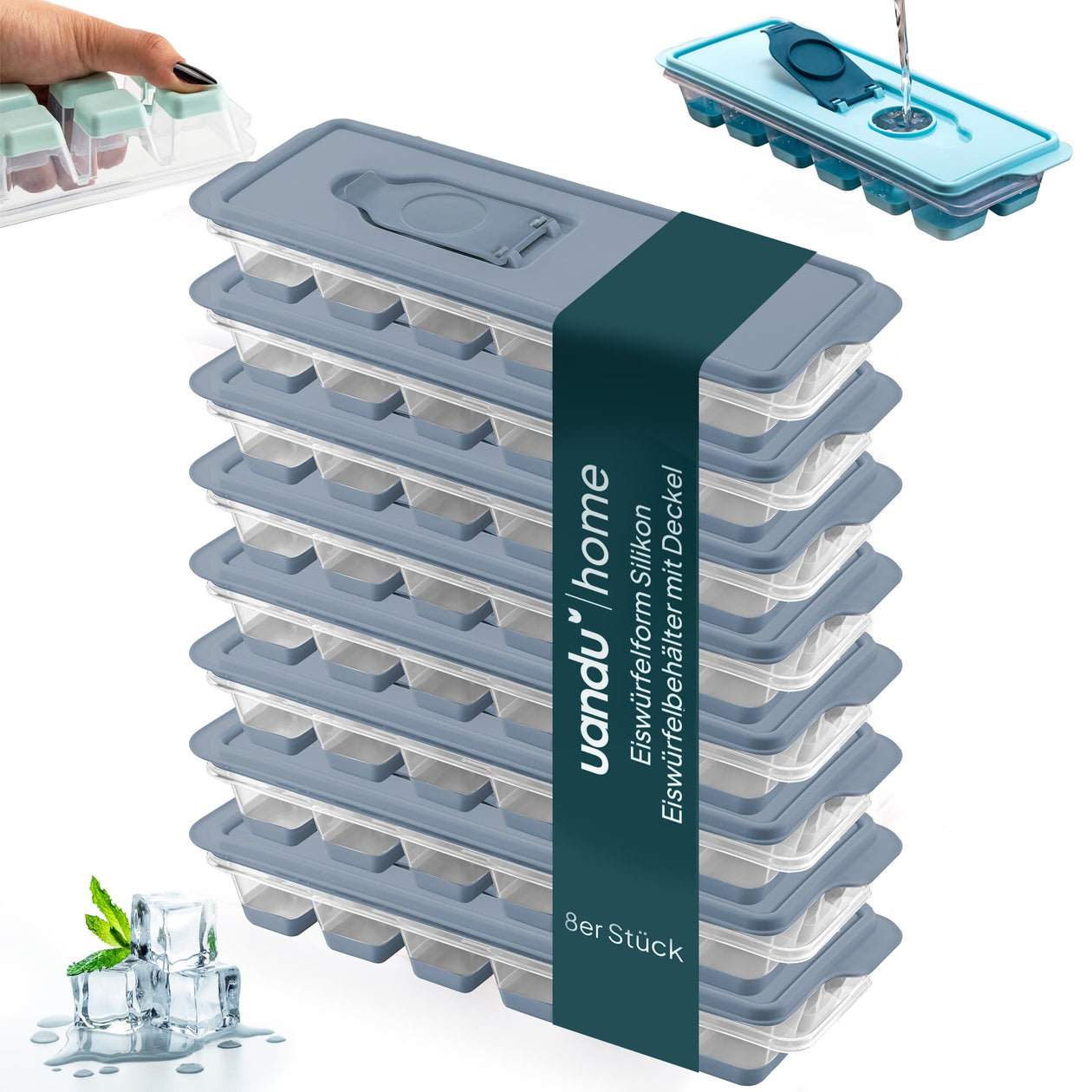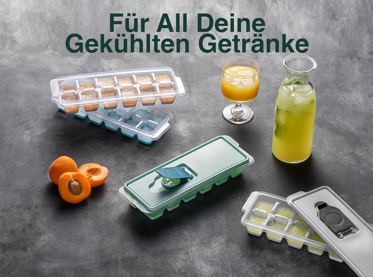Eiswürfelform Silikon Mit dieser Silikon-Eiswürfelform mit Deckel in Lebensmittelqualität können Sie nicht nur Ihre Getränke kühlen, sondern auch kreative gefrorene Snacks zubereiten. Sie ist sicher, praktisch und einfach zu verwenden, und sie trägt dazu bei, dass Ihre gefrorenen Leckereien stets frisch und schmackhaft sind. Lebensmittelqualität: Hergestellt aus hochwertigem, lebensmittelechtem Silikon, BPA frei, die Eiswürfelschalen sind frei von schädlichen Chemikalien, um die Sicherheit Ihrer Lebensmittel zu gewährleisten. Kompakter und Sicherer Deckel: Die mitgelieferten Deckel ermöglichen es, dass die Eiswürfel frei von Fremdstoffen und Gerüchen bleiben, während sie gefrieren. Dies trägt dazu bei, die Frische und den Geschmack Ihrer Eiswürfel zu bewahren. Die Eiswürfelschalen mit Deckel verhindern das Ausschütten der neu Befüllten Eiswürfel. Durch den Deckel können mehrere Eiswürfelschalen mit Deckel Aufeinander gestapelt werden. Vielseitig und Praktische Anwendung: Die Eiswürfelschale für saubere und frische Eiswürfel. Die Eiswürfelformen sind wiederverwendbar. Die auslaufsichere und luftdichte Eiswürfelschale kann auf Picknick oder Ausflüge mitgenommen werden. Es kann sogar als Gefrierschrank verwendet werden. Die Eiswürfelschalen mit Vorratsbehälter verhindert das Schmelzen.