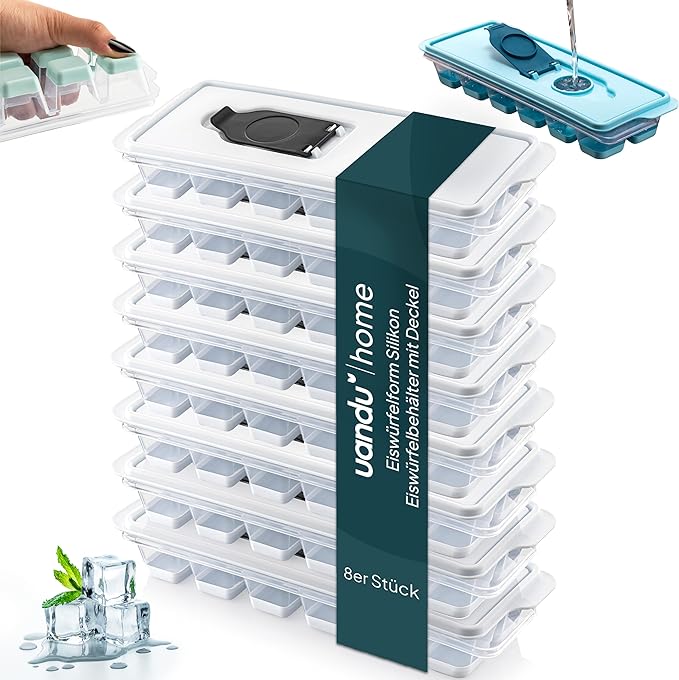 - HOHE LEBENSMITTELQUALITÄT: Diese Silikon-Eiswürfelform ist das perfekte Behälter, um Ihre Getränke zu kühlen oder leckere gefrorene Snacks zuzubereiten. Das Eiswürfelform aus Silikon mit Deckel in Lebensmittelqualität ist eine praktische und sichere Lösung für die Herstellung von Eiswürfeln und anderen gefrorenen Leckereien. Hergestellt aus hochwertigem, lebensmittelechtem Silikon, das frei von schädlichen Chemikalien ist, um die Sicherheit Ihrer Lebensmittel zu gewährleisten.