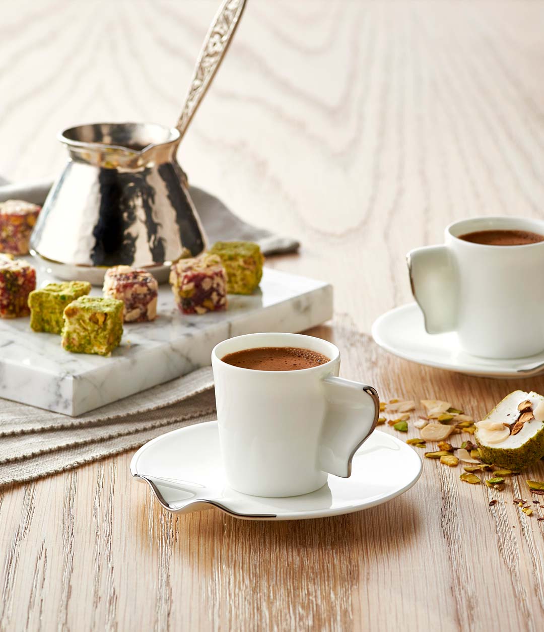 Porselen sınıfının en kaliteli malzemesi olan bone china porselenden üretilen kahve fincanı tasarımları, ince ve şık formuyla kahve kültürünüzü zenginleştiriyor.