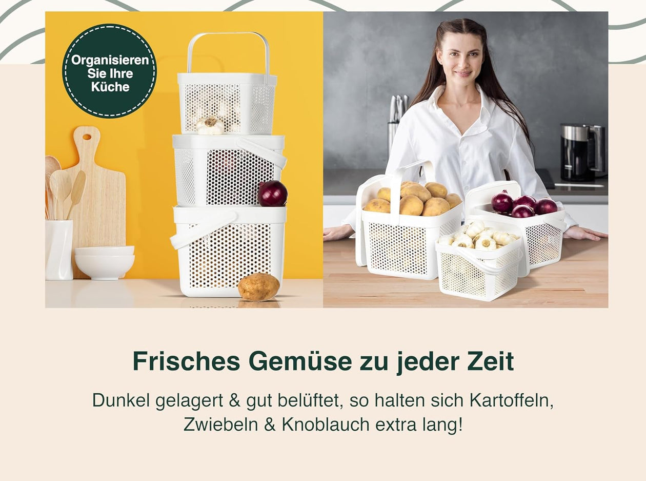 - ORDNUNG IN DER KÜCHE: Mit dieser Gemüse-Aufbewahrungsbox behalten Sie nicht nur die Ordnung in Ihrer Küche bei, sondern gewährleisten auch, dass Ihre Kartoffeln, Zwiebeln und Knoblauchknollen länger frisch bleiben. Es ist die ideale Lösung, um Ihre Küche sauber und organisiert zu halten, während Sie gleichzeitig Ihre Lebensmittelvorräte schützen. Aufbewahrung Kartoffeln zwiebeln knoblauch.