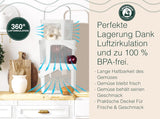 - OPTIMALE BELÜFTUNG: Die integrierten Luftlöcher sorgen für eine ausgezeichnete Belüftung, um die perfekte Umgebung für Ihre Gemüsevorräte zu gewährleisten. Dies hilft, die Frische und Haltbarkeit zu verlängern. Aufbewahrungsboxen Küche mit ein must have.