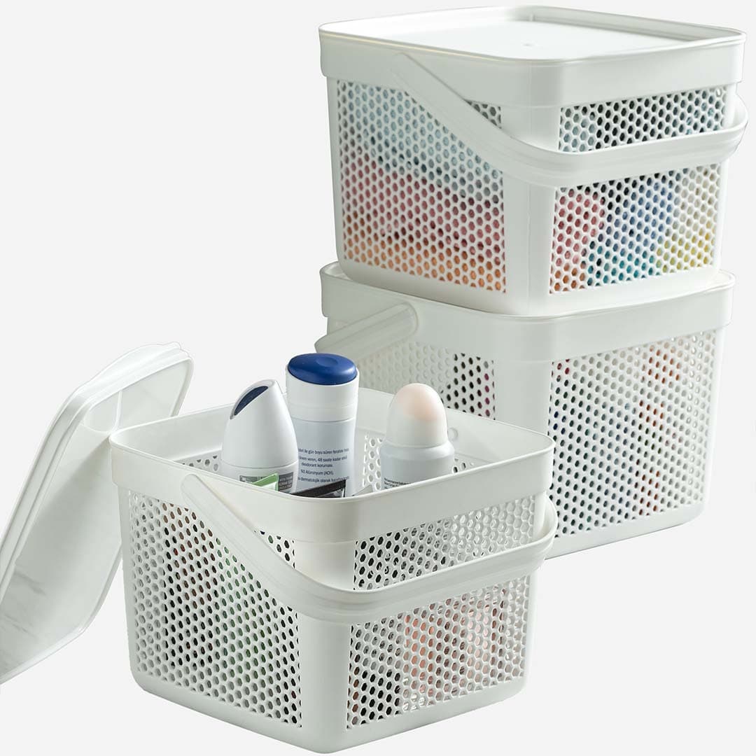 Kunststoff Korb Rattan - 8Lx3 set Weiß