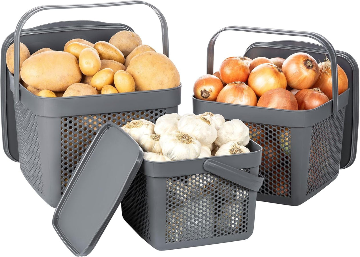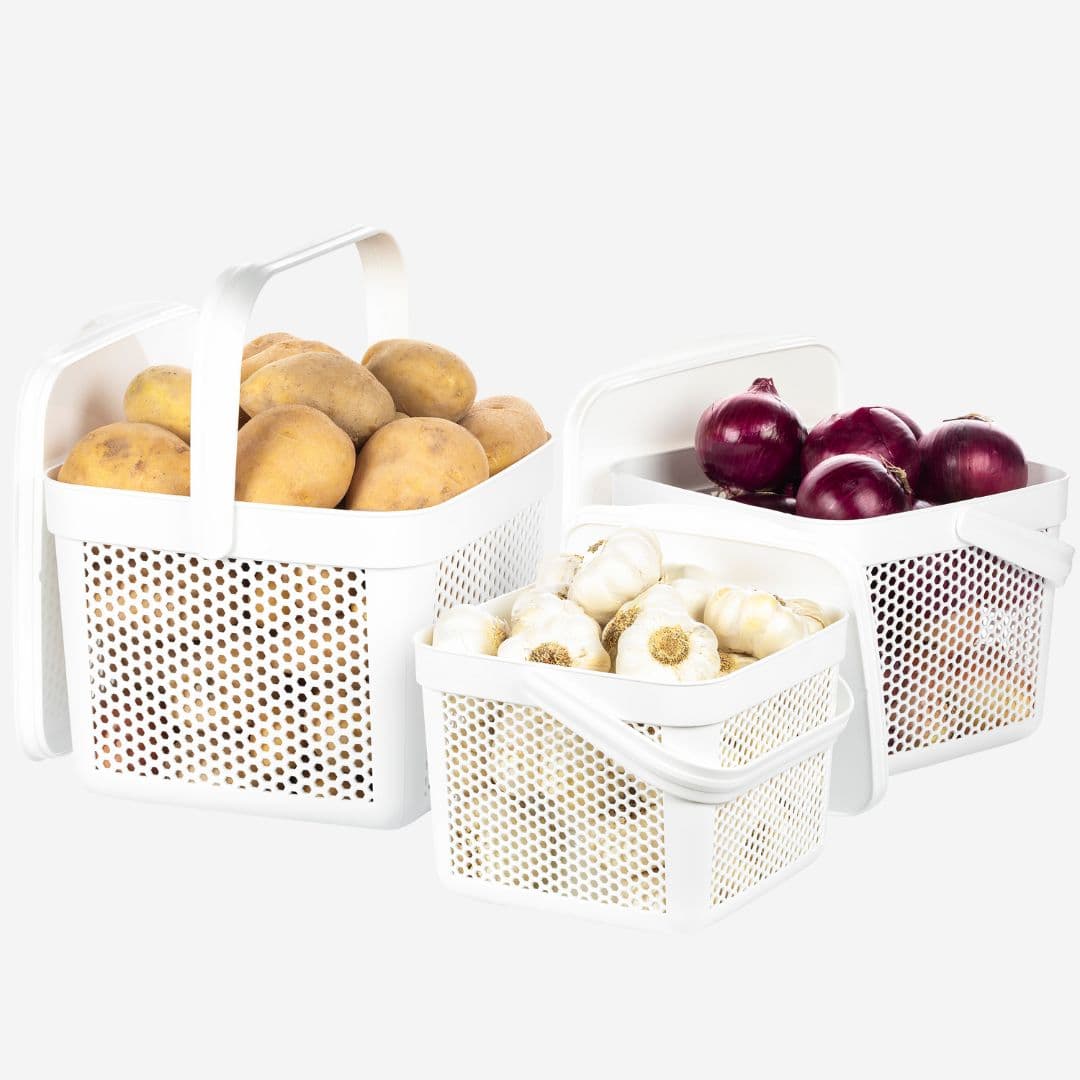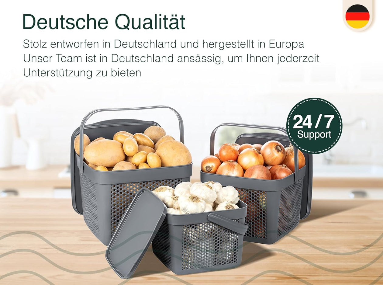 - IDEALE GEMÜSE AUFBEWAHRUNG: Das ideale Aufbewahrungsbox / Vorratsdosen für Kartoffeln, Zwiebel und Knoblauch mit Luftlöchern um Ordnung in Ihrer Küche zu schaffen und Ihre Vorräte frisch zu halten. Ganz besonders als Kartoffel Aufbewahrungsbox