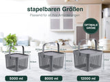 - LEICHT ZU TRAGEN: Ein robuster Griff erleichtert das Tragen und Transportieren der Box, sodass Sie Ihre Vorräte mühelos von einem Ort zum anderen bewegen können. Ideal auch als Pfandflaschen Sammelbehälter.