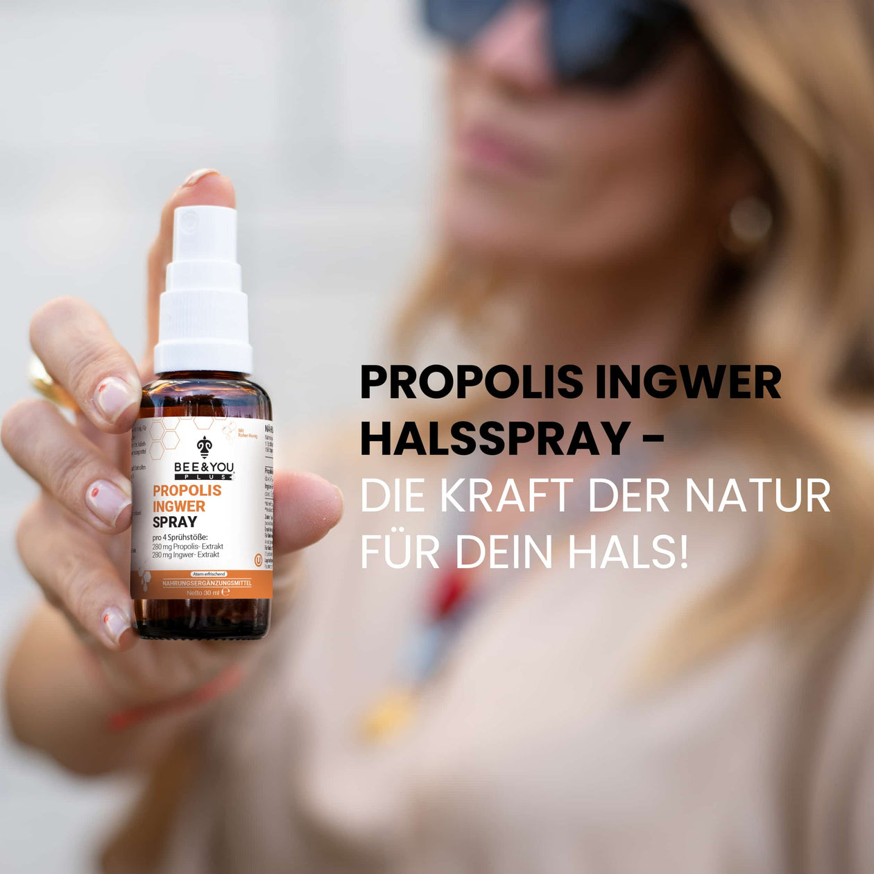 Unser Propolis Ingwer Spray für Mund- und Rachen ist eine natürliche und wirksame Lösung zur Pflege und Unterstützung der Mund- und Rachengesundheit. Propolis, ein von Bienen hergestelltes Harz mit wertvollen Antioxidantien. Zusammen mit dem würzigen und wohltuenden Ingwer sowie dem süßen Honig ergibt sich eine kraftvolle Kombination für Ihr Wohlbefinden. Unsere Sprühflasche ermöglicht es Ihnen, das Produkt gezielt auf die betroffenen Stellen im Mund zu sprühen.