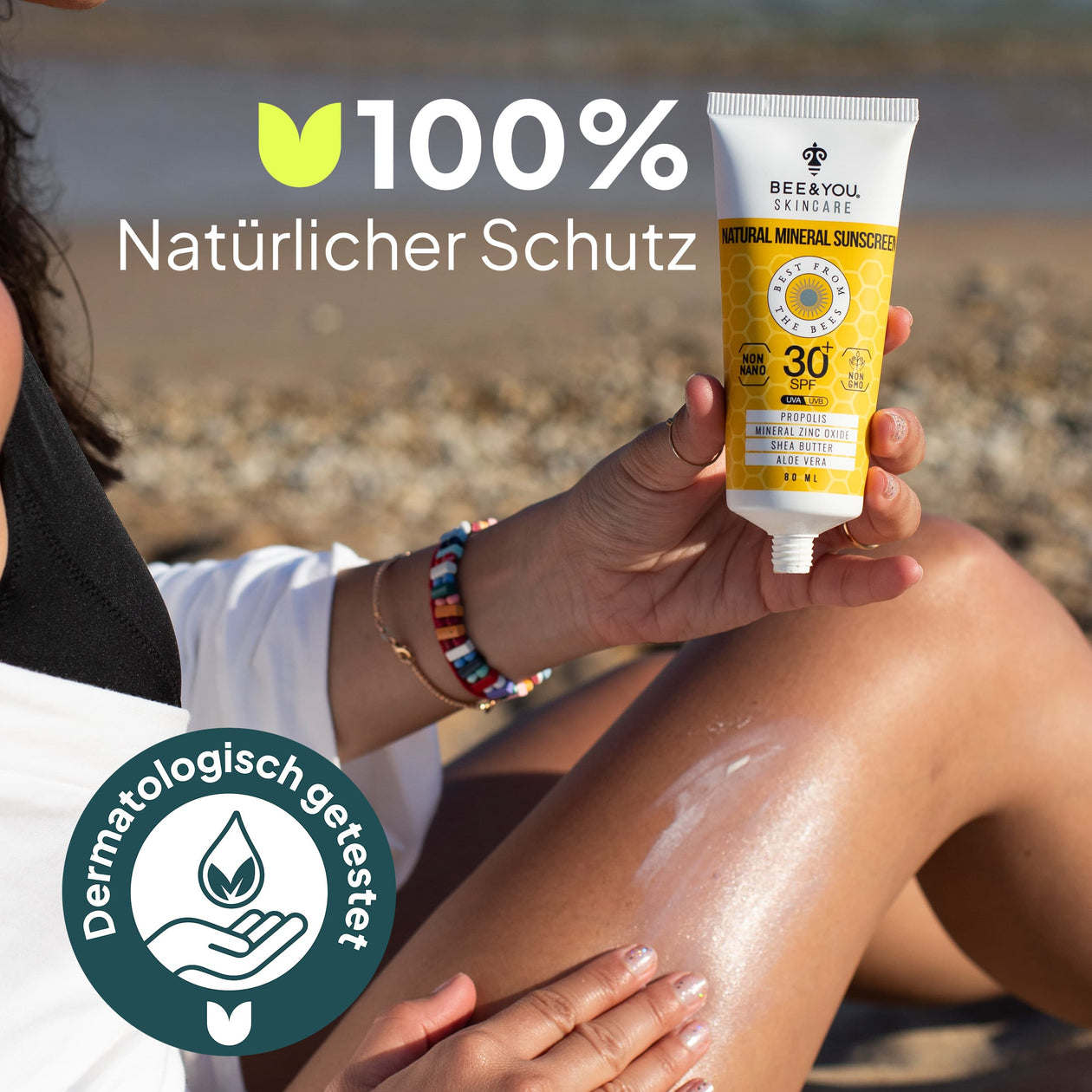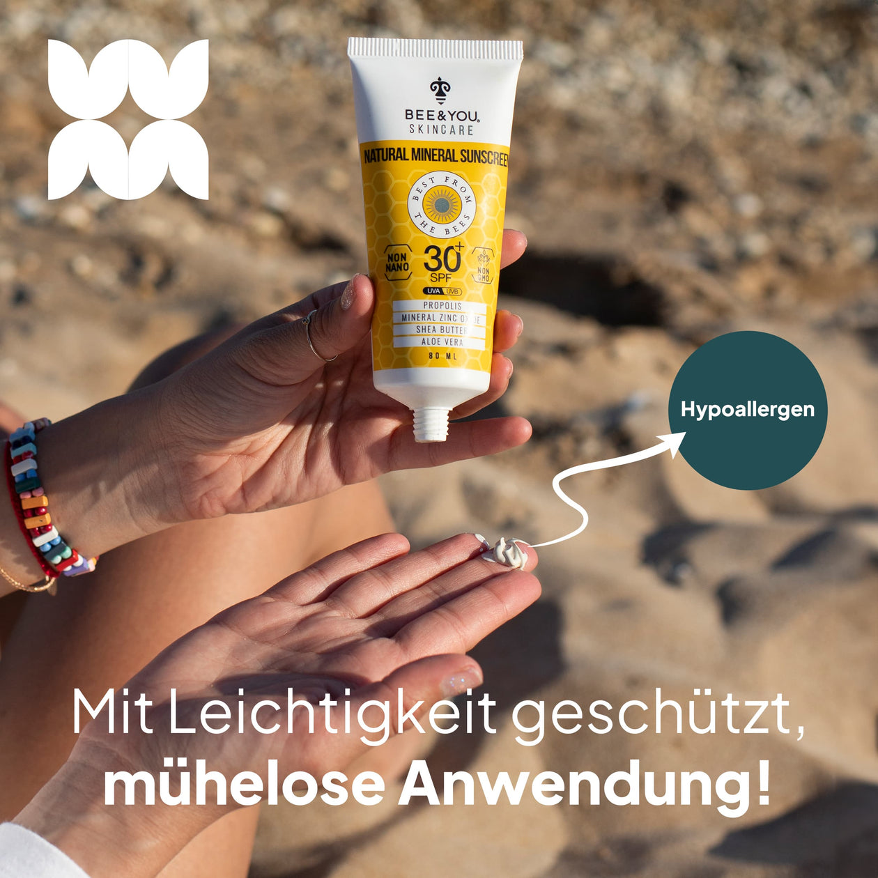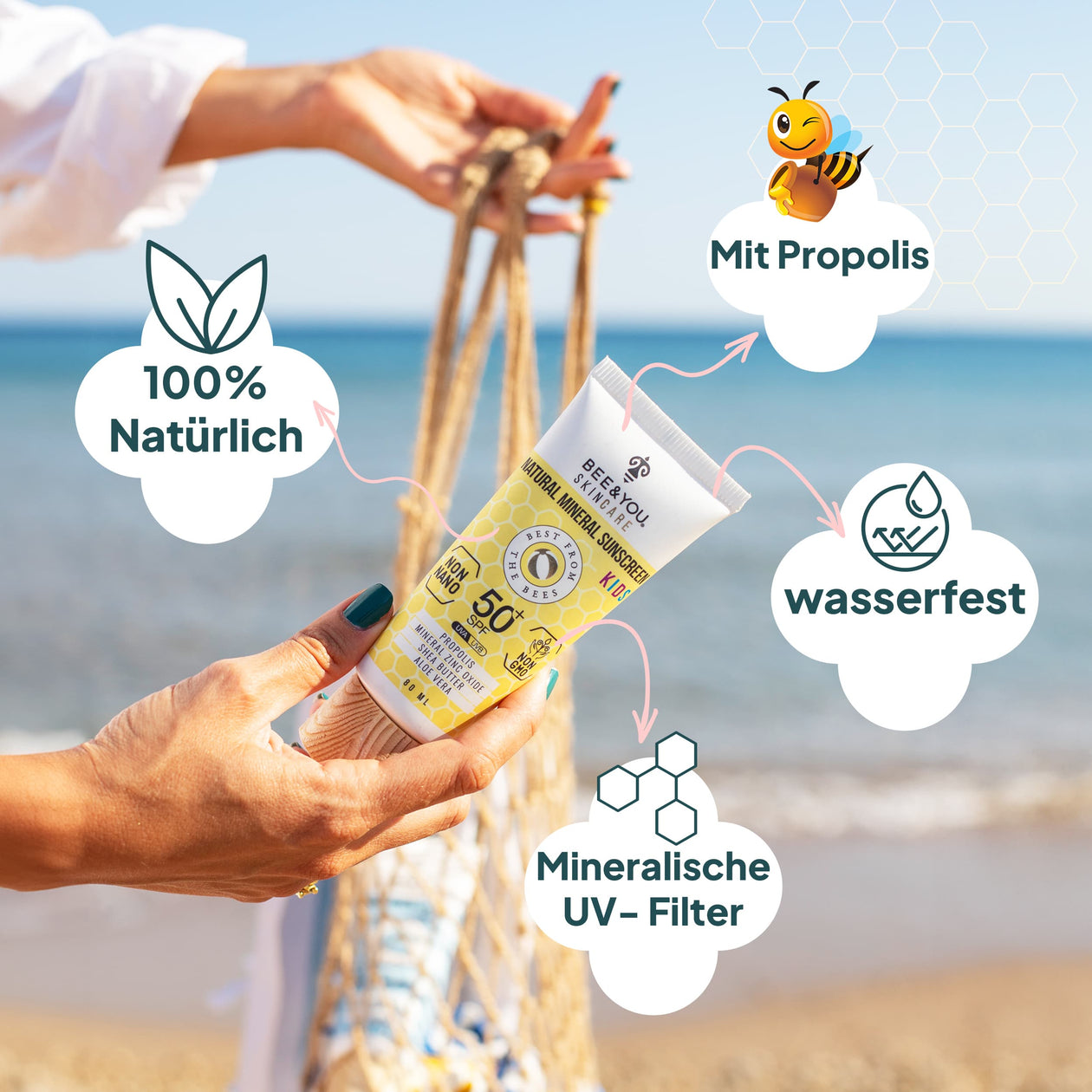 - Propolis, mineral çinko ve ham bal içeren güneş koruyucu krem, cildi beslerken cildi UV ışınlarının neden olduğu hasarlardan koruyarak cilt üzerinde bir bariyer oluşturur. Propoliste bulunan doğal bir flavonoid olan Chrysin, cildi güneşin zararlı ışınlarından korur ve güneş kaynaklı cilt yaşlanmasını önler. Bilimsel çalışmalar ayrıca propolisin güneş kaynaklı cilt yaşlanmasını ve lekelerini önlediğini bildirmektedir.