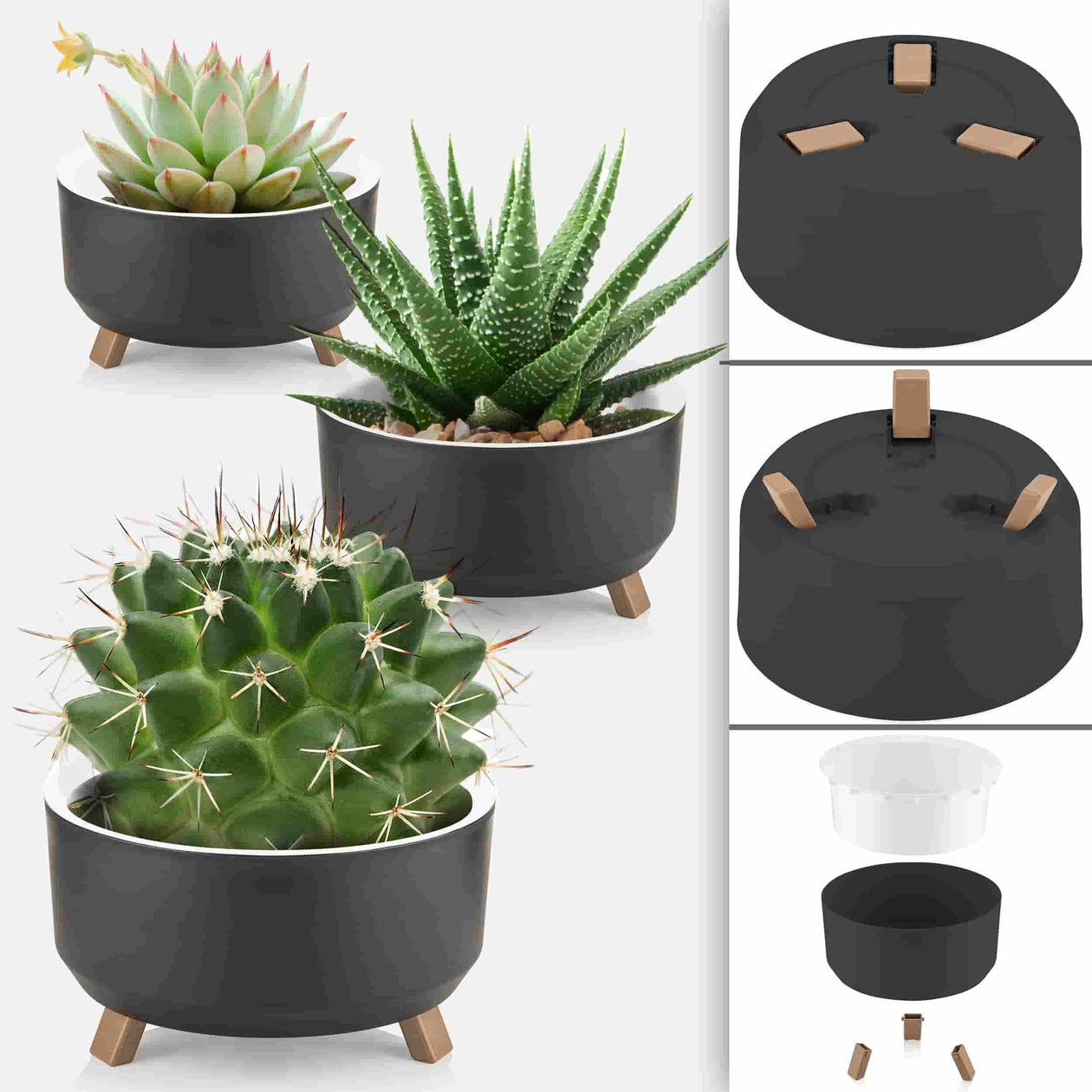 - Ayaklı modern saksılar. İç mekan bitkileri için saksılar odanızda harika bir atmosfer yaratır. 3'lü setimiz 3 boydan oluşmaktadır: En küçük boy ekicinin çapı 15 cm'dir. Orta boy saksının çapı 18 cm'dir. En büyük boy saksı 22cm çapındadır.